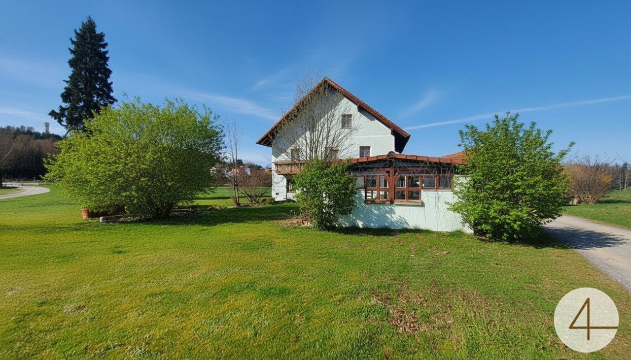 3) Nebengebäude: Die Liegenschaft bietet weiteres eine sonnige Veranda, welche perfekt zum genießen der sommerlichen Abendstunden zu zweit oder mit Familie und Freunden einlädt. Ausgestattet mit einem gemauerten Grill, bietet die Veranda eine herrliche Kulisse für einen gemütlichen Grillabend bei jeden Wetter mit herrlichen Blick Richtung bayrischen Wald.
