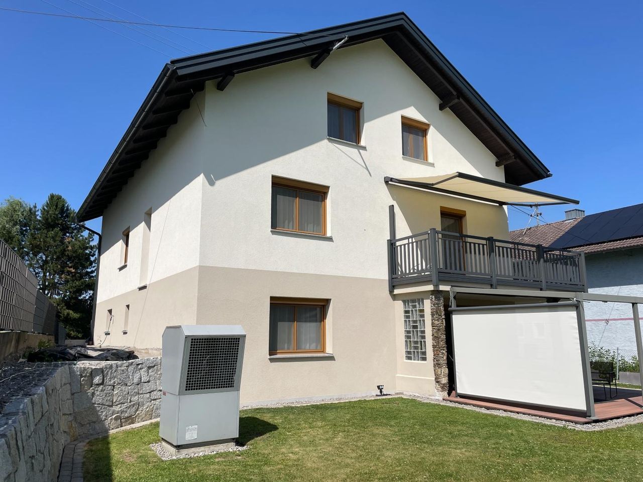 Das Haus wurde 2016 sehr stilvoll umgebaut und es wurden hochwertige Sanierungsmaßnahmen durchgeführt (Vollwärmeschutz, Innen- und Außenputz, Erneuerung sämtlicher Leitungen, Ausbau Dachgeschoß etc.), wodurch sich der Energiestandard massiv verbessert hat (Klasse B). 2023 wurde das Dach erneuert und mit einer Photovoltaikanlage ausgestattet. Die Einspeisung ins Stromnetz ist möglich – ein Pluspunkt für energieeffizientes Wohnen. Im Carport ist eine Wallbox installiert.