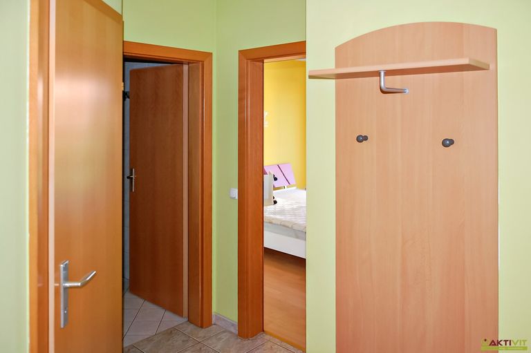 Die Fläche verteilt sich auf: Vorraum, zwei Schlafzimmer, Wohn- und Esszimmer mit Küchenbereich, Abstellnische sowie Bad und getrenntes WC.