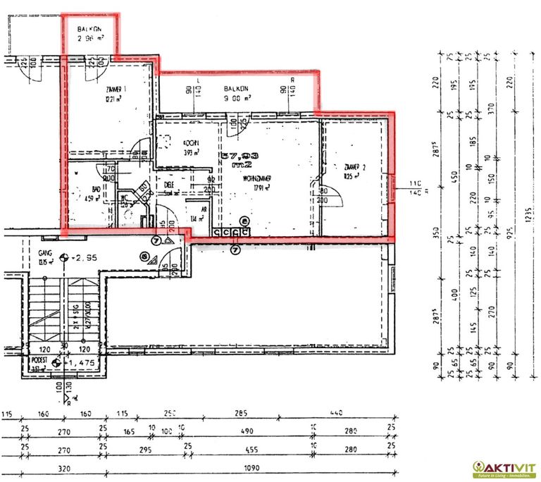 - Zwei Balkone mit insgesamt rund 12 m² Balkonfläche