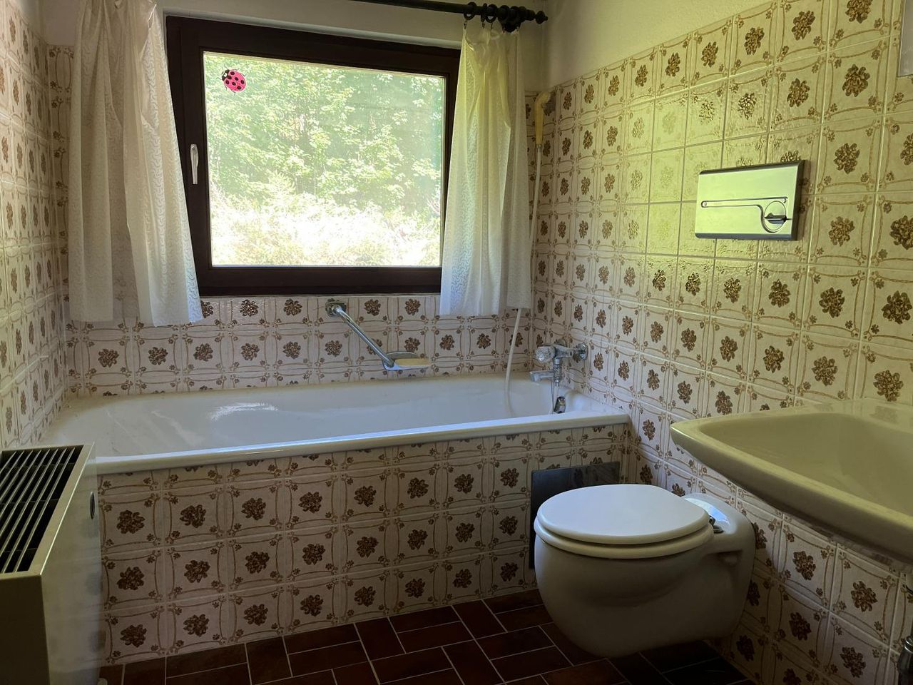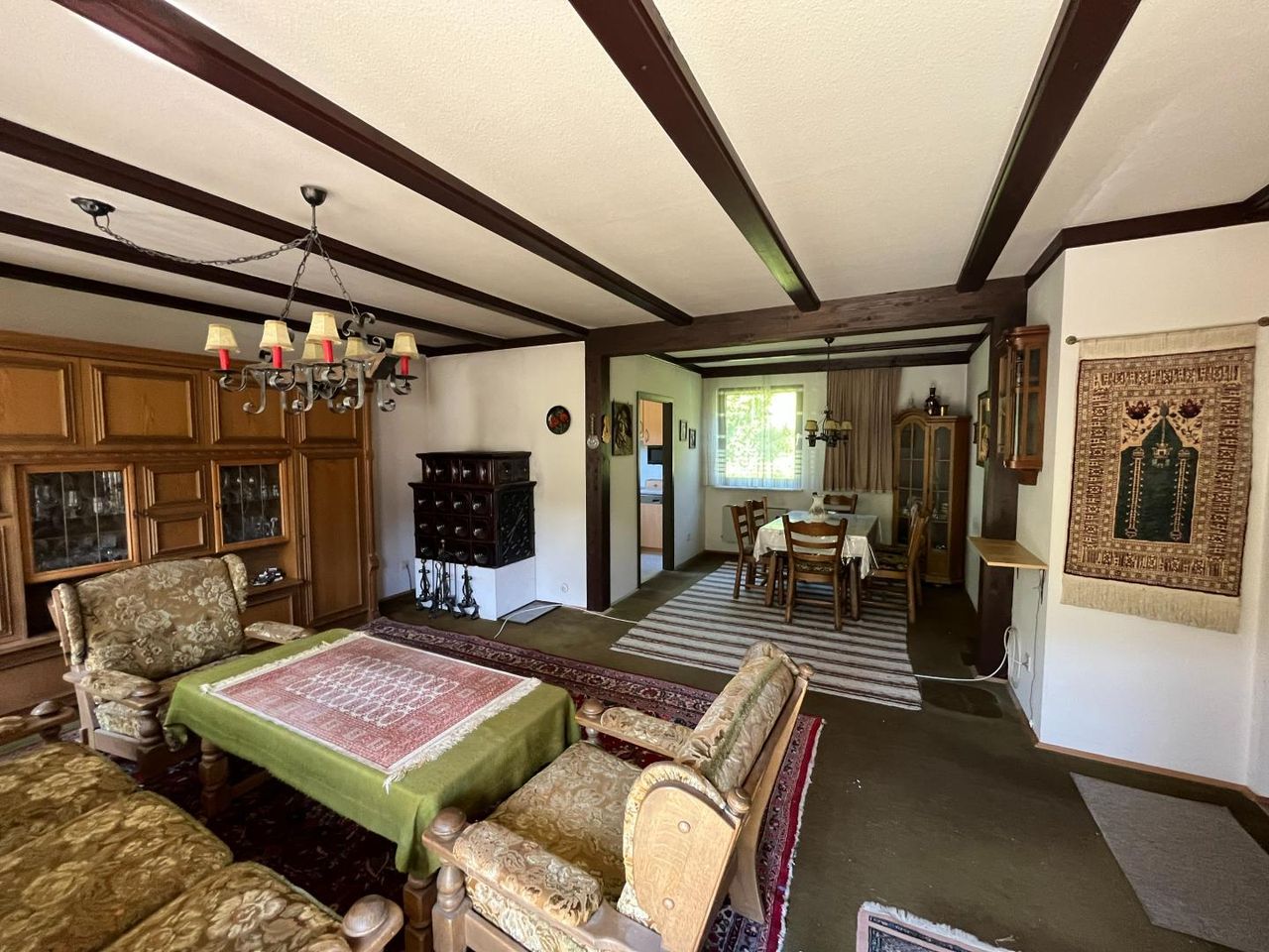 Ergänzt wird das Objekt durch eine vorgelagerte Garage mit überdachtem Zugang in den Keller. Das Haus befindet sich in bezugsfertigem Zustand mit einem dem Alter entsprechenden Modernisierungs- und Renovierungsbedarf.