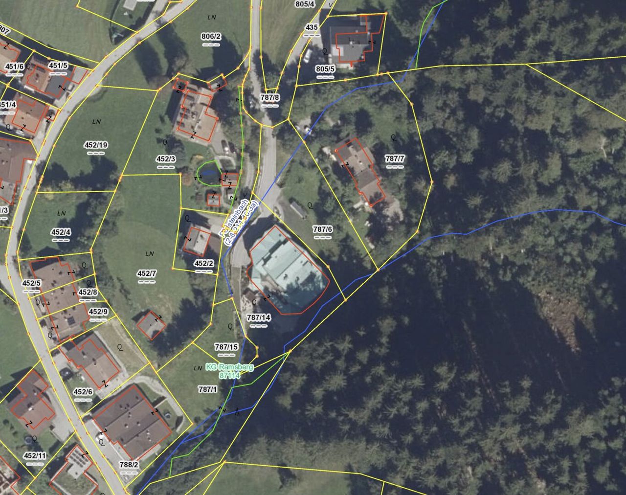 Die Liegenschaft befindet sich in absoluter Sonnen- und Alleinlage auf einem großzügigen Areal von rund 4.000 m² (Gst.-Nr. 787/7 & 787/6) mit Bauland-Mischwidmung und bietet eine Kombination, die selbst im hochpreisigen Alpenmarkt nur äußerst selten verfügbar ist:
