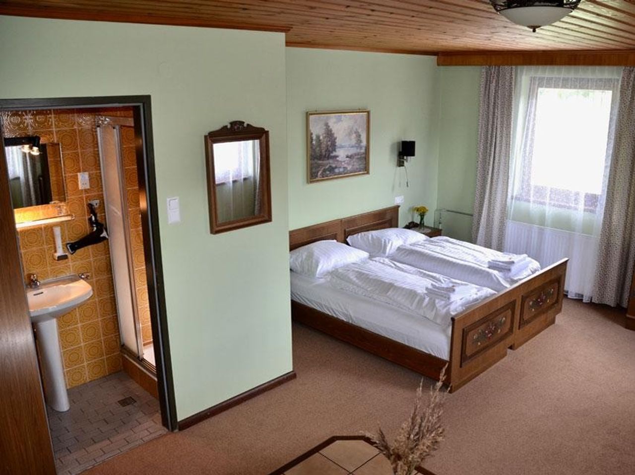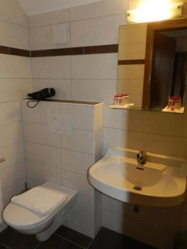 Bei den 16 Gästezimmern handelt es sich um Doppel- und Familienzimmer. Grundsätzlich ist die Anlage sehr großzügig gebaut und könnte durch eine Freifläche im Norden des Gebäudes auch noch erweitert werden. Das gesamte Objekt befindet sich in einem durchweg sehr gepflegten Zustand. Das Hotel ist derzeit in Betrieb und vollständig ausgestattet. Die Bäder sind teilsaniert und ausgestattet mit Dusche/WC (z.T. Badewanne), Waschtisch, Haarfön, Bade-/ und Handtüchern. Im Rahmen der großzügigen Renovierung wurde eine neue Zentralheizung mit Pelletsvergaser installiert. Außerdem wurde eine umfassende Lüftungsanlage und im Restaurant eine neue Küche eingerichtet.