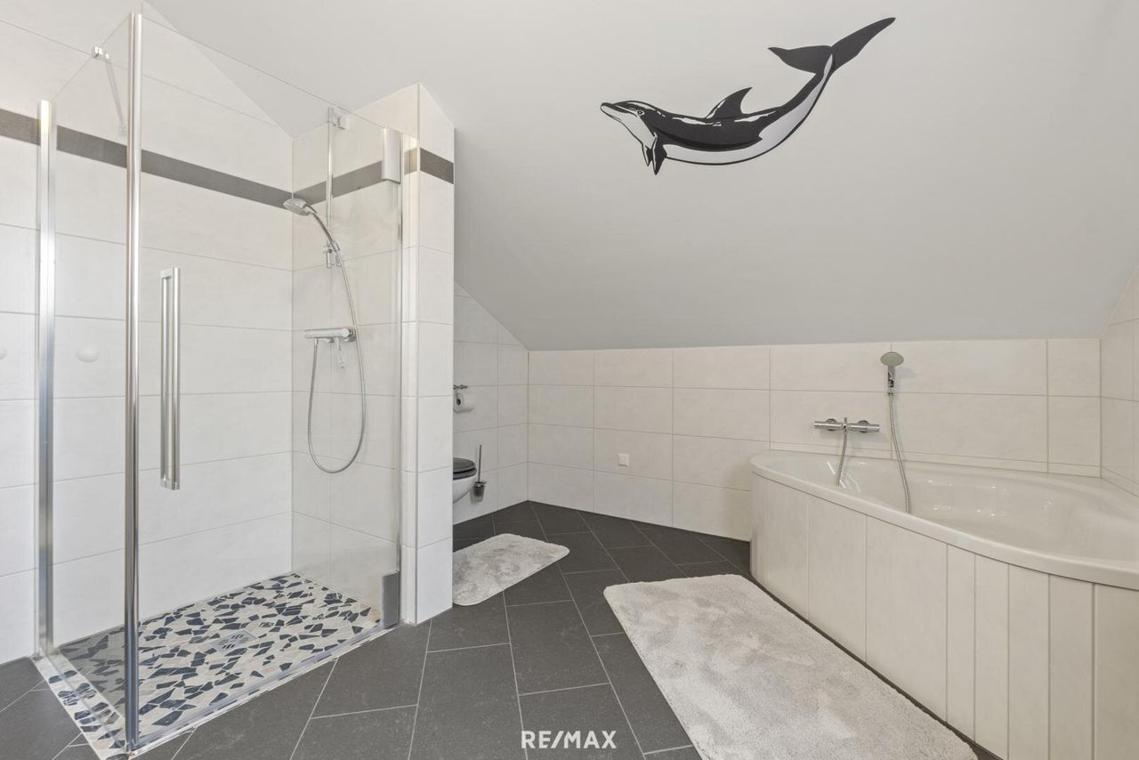 • Badezimmer mit Dusche, Badewanne und WC - ca. 12,46 m²