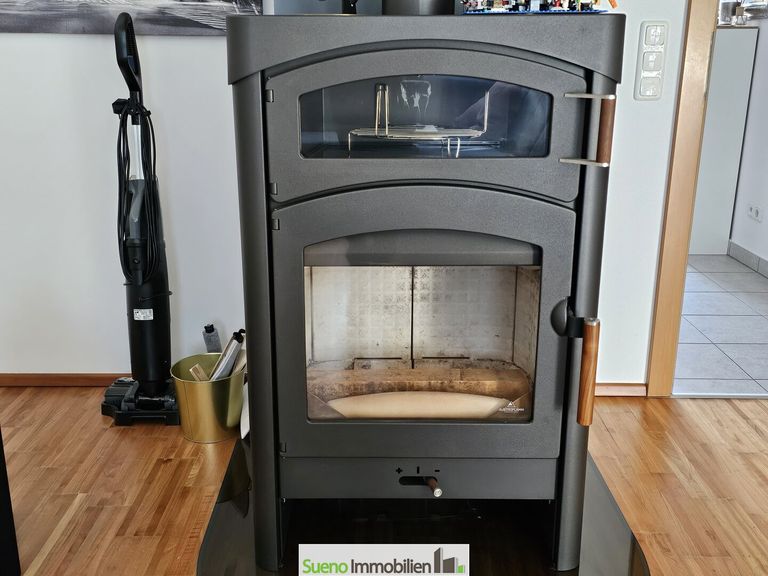- Toller Ofen im Wohnzimmer/Kaminofen mit ca. 9 kW - Kaminofen 2025 überprüft, mit Speichersteine und mit Kochplatten und Backfunktion, 3 m2 Hartholz Brennholz mit Unterstand
