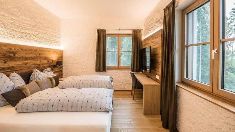 Beim Umbau wurde großen Wert auf eine exklusive Ausstattung und die Verwendung von Holz- und Naturmaterialen gelegt.