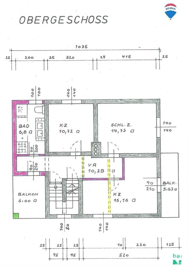 Das Obergeschoss verfügt über 59 m² Wohnfläche und umfasst einen Vorraum mit Ausgang auf den Westbalkon, ein helles Tageslichtbad mit Badewanne und Dusche sowie drei Zimmer, von denen eines über einen eigenen Balkon verfügt. Die beiden Balkone erweitern den Wohnraum ins Freie und laden zu entspannten Stunden mit Blick ins Grüne ein.
