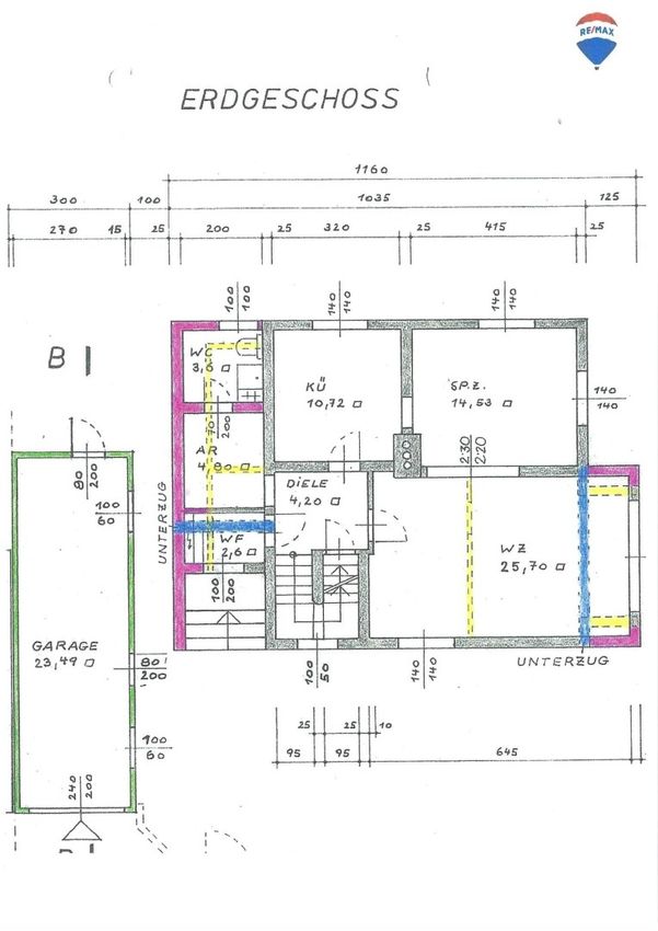 Für den PKW steht eine ca. 23 m² große Garage mit elektrischem Tor zur Verfügung, an die ein gemauerter Abstellraum für Gartengeräte oder zusätzliche Lagermöglichkeiten anschließt.