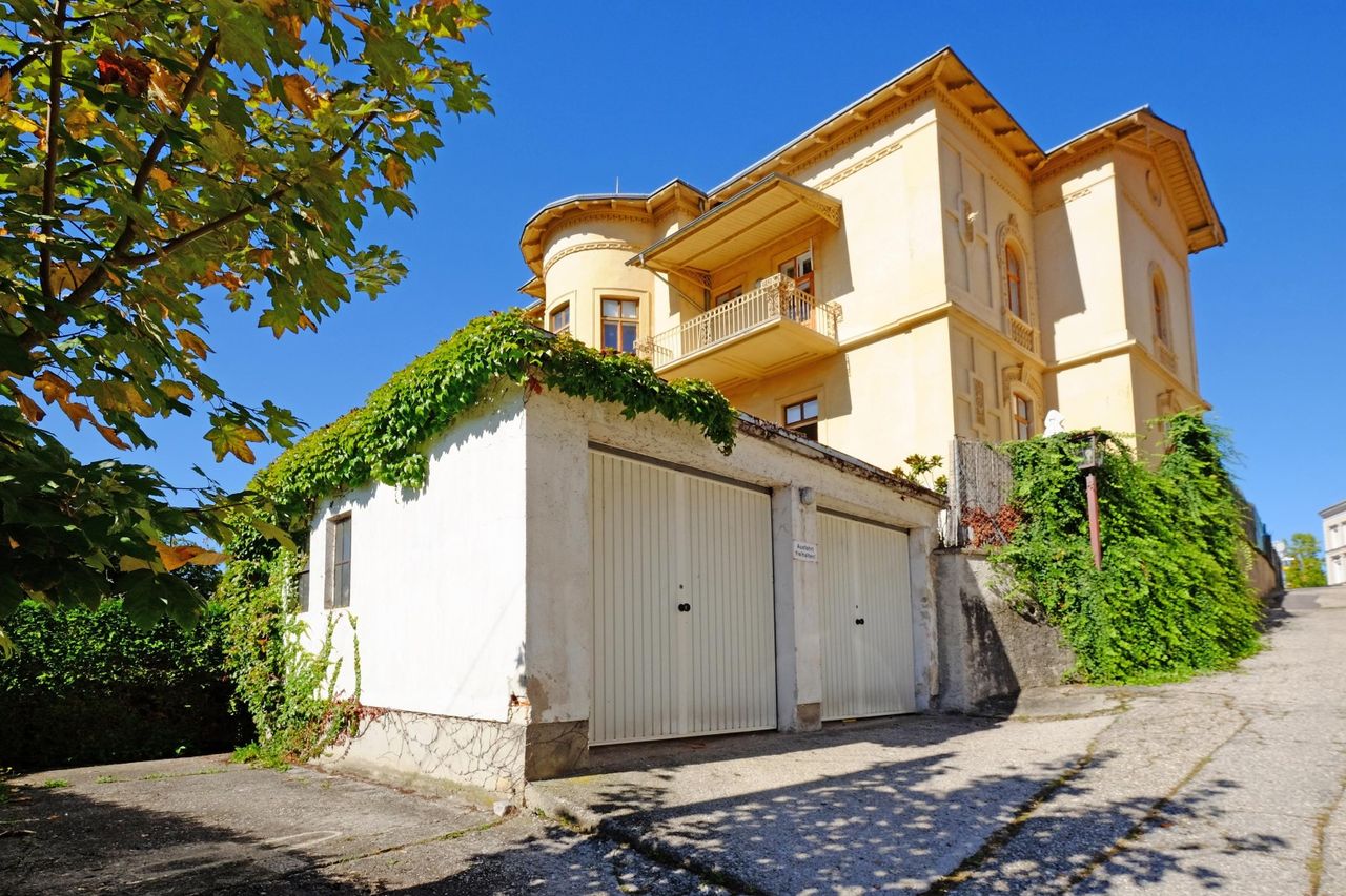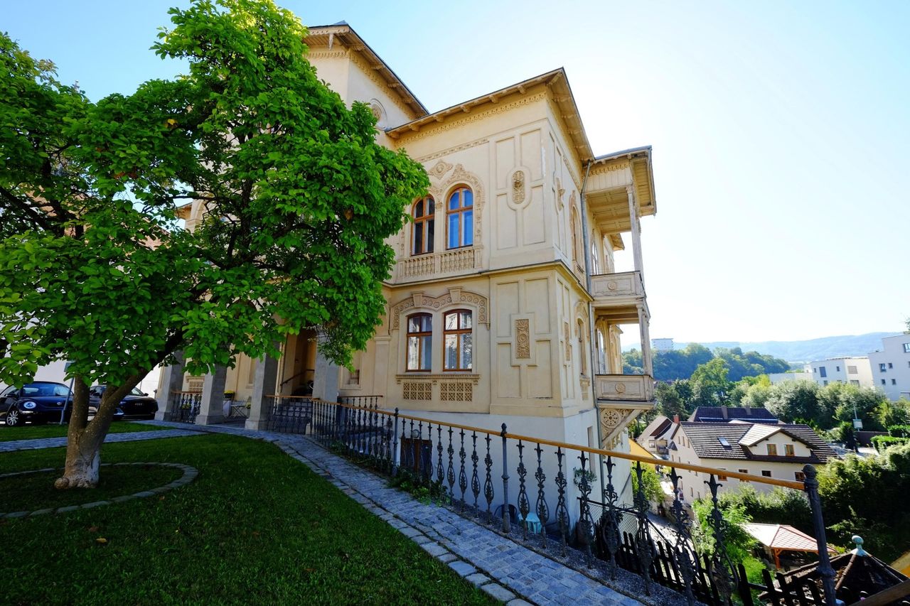Im Jahr 1869 im Stil des romantischen Historismus errichtete Villa und wurde am 9.12. 1988 unter DENMALSCHUTZ gestellt. Sie wrurde nach Carl Almeroth, einem Industriellen und Förderer Anton Bruckners benannt. ANTON BRUCKNER hielt sich von 1885 bis 1894 wiederholt in der VILLA ALMEROTH auf. Die beiden Herren waren enge Freunde. Das Gebäude ist ein wertvolles Baudenkmal in Steyr. Das Bestandsgebäude hat 178 HWB und das Dachgeschoß 132. . Es ist ein annähernd quadratischer Bau mit kreuzförmig hervortretenden Mittelachsen mit 2 Hauptgeschossen mit massiven Außenwänden und solidem Fundament. Die Nutzfläche inkl. 2 Garagen ist 1035 m2 plus 570 m2 Außenfläche. Sehr...