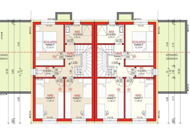- Der Eigengarten wird vom Bauträger mit dem Mutterboden planiert, humusiert und angesät
