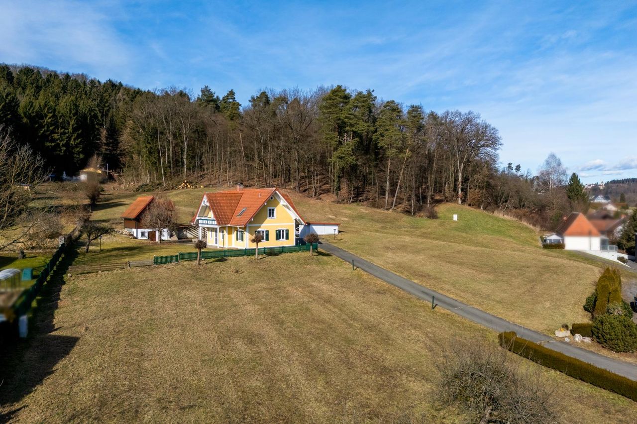 In erhöhter, sonniger Aussichtslage befindet sich diese außergewöhnliche Liegenschaft mit einer Gesamtgrundstücksgröße von 5.983 m². Das Anwesen vereint repräsentatives Wohnen, touristische Nutzungsmöglichkeiten sowie attraktives Entwicklungspotenzial in einer Immobilie. Das Haupthaus – eine im Jahr 2000 errichtete Landhausvilla im klassischen Stil – befindet sich gemeinsam mit Nebengebäuden auf einem großzügigen, rund 3.110 m² großen Grundstück. Zusätzlich wurden bereits drei Bauplatzparzellen mit insgesamt ca. 2.600 m² vermessen, die bei Bedarf separat veräußert werden können. Dadurch bietet sich eine seltene Kombination aus exklusivem Wohnsitz und wirtschaftlich interessanter Reservefläche. Die gesamte Liegenschaft präsentiert sich als harmonisches Hof-Ensemble mit Villa, Winzerhaus mit Weinkeller, separatem Nebengebäude...