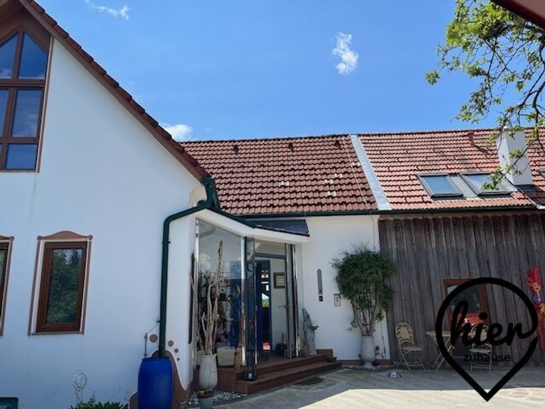 Rund 300 m² Wohn-/Nutzfläche auf 2 Ebenen (EG: rd. 200 m², OG: rd. 100 m²) erwarten Sie auf einem wunderschönem, terrassierten Grundstück mit ca. 6.900 m² Wiesen, Weiden und Gärten u.a. samt Schwimmteich und Holztenne.