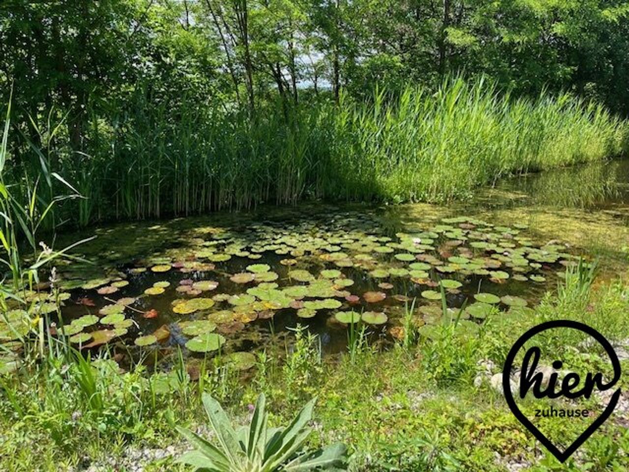 - Großzügiger Garten mit Zisterne, Hochbeeten, Glashaus und naturnahem Seerosen- und Schwimmteich