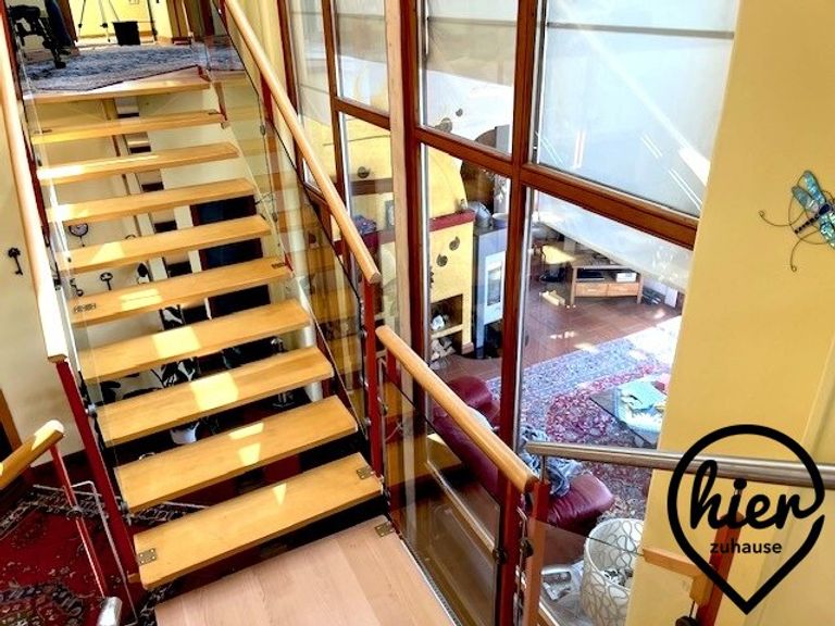 - Optimal auch als Kombi von Wohnen und Arbeiten nutzbar – genügend Platz für ein Home-Office vorhanden bzw. ein Atelier, da 2 separate Zugänge