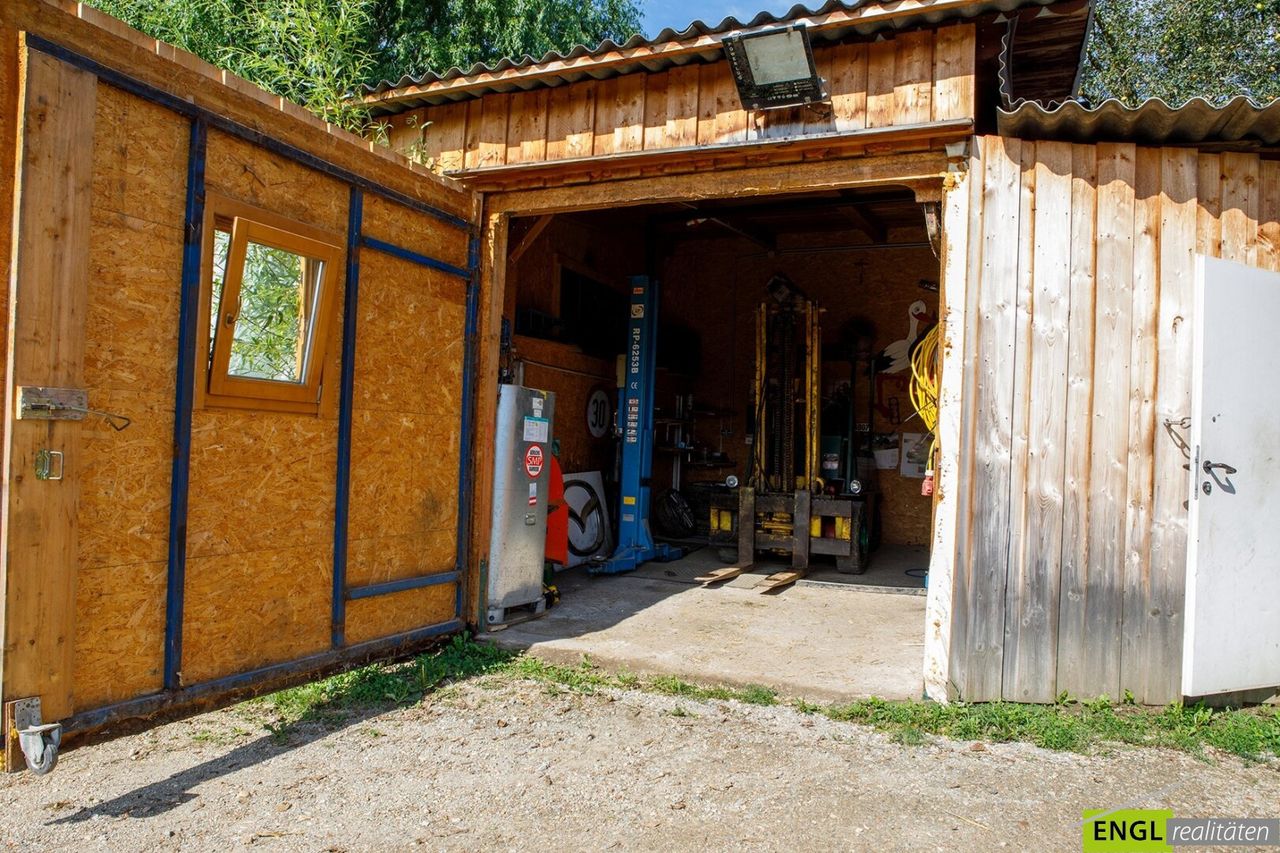 Auf dem Grundstück befindet sich zusätzlich eine Holzhalle (Baujahr 2013) mit einer Fläche von rund 200 m² – vielseitig nutzbar für Landwirtschaft, Handwerk oder Hobby.