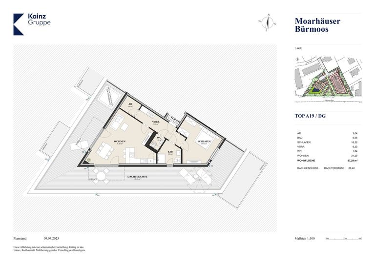 2 Zimmer Wohnung mit traumhafter 88m² großer Dachterrasse in Bürmoos!