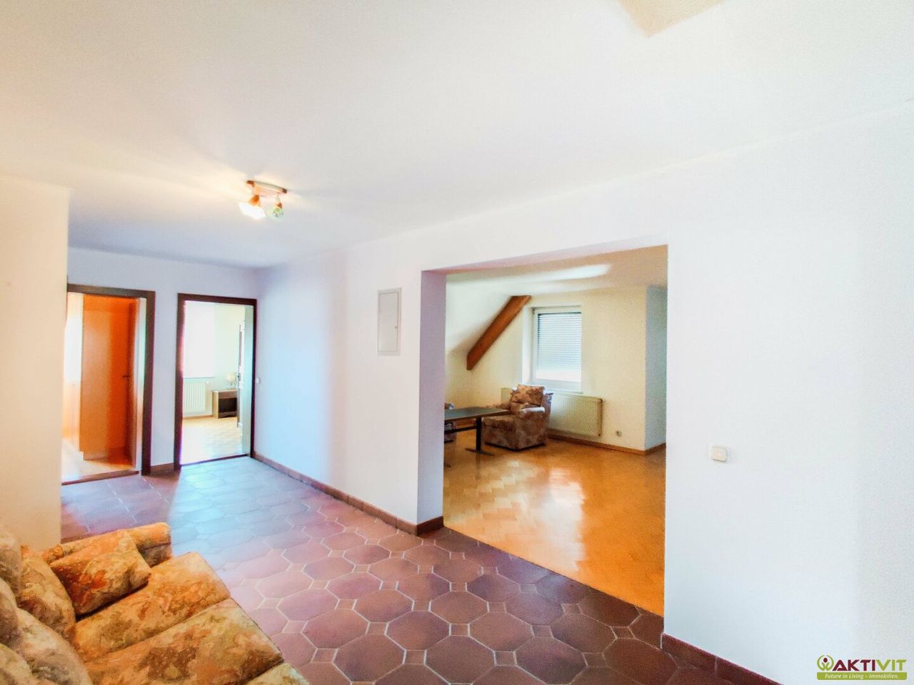 Vom Obergeschoß ist Zugang zu einem Balkon mit rund 15 m² gegeben.
