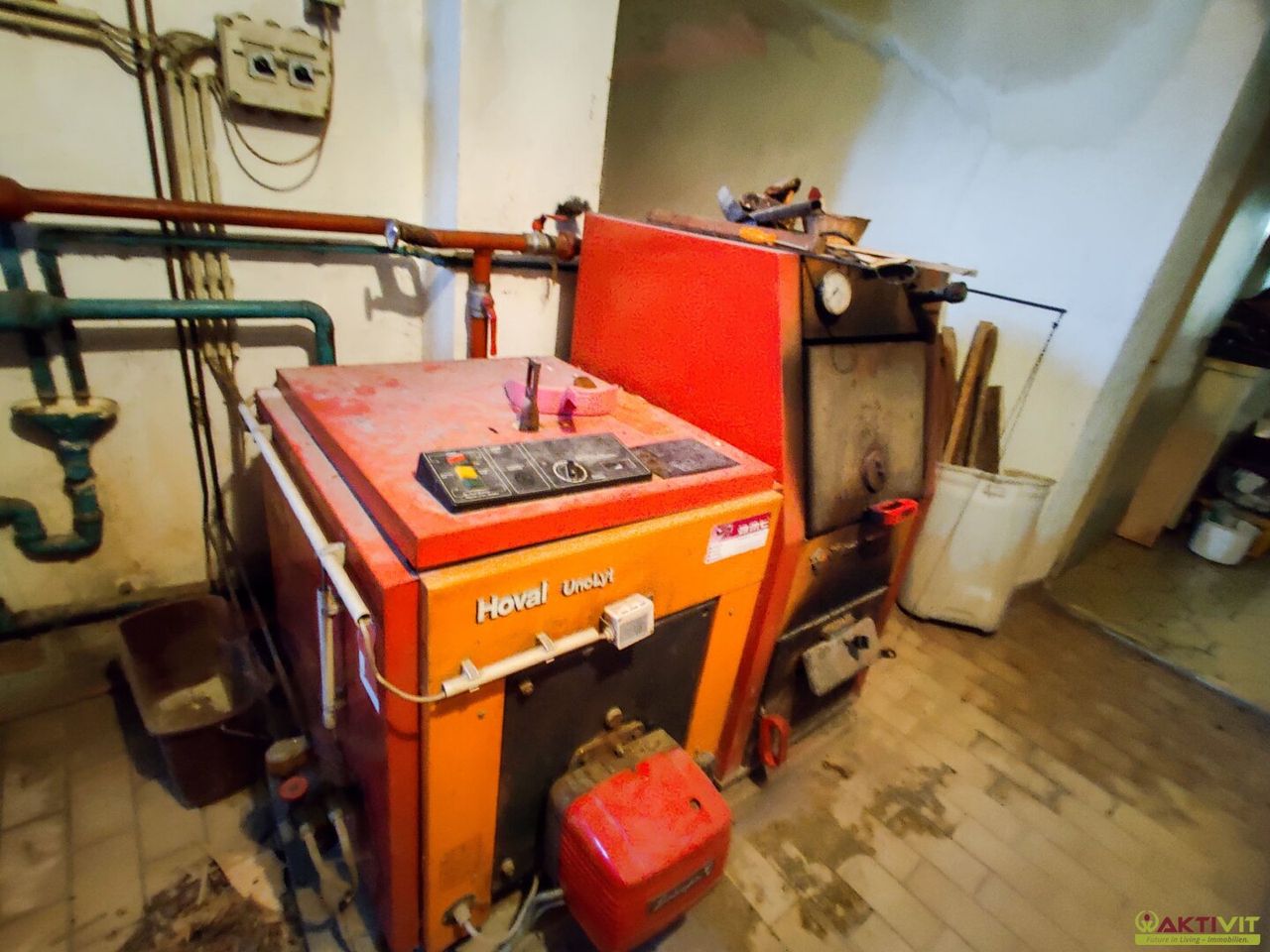 Die Beheizung erfolgt mittels einer Öl-Zentralheizung sowie Holzöfen.