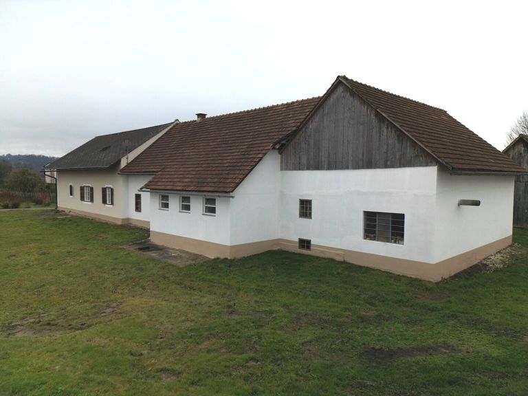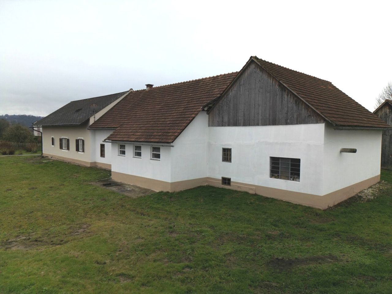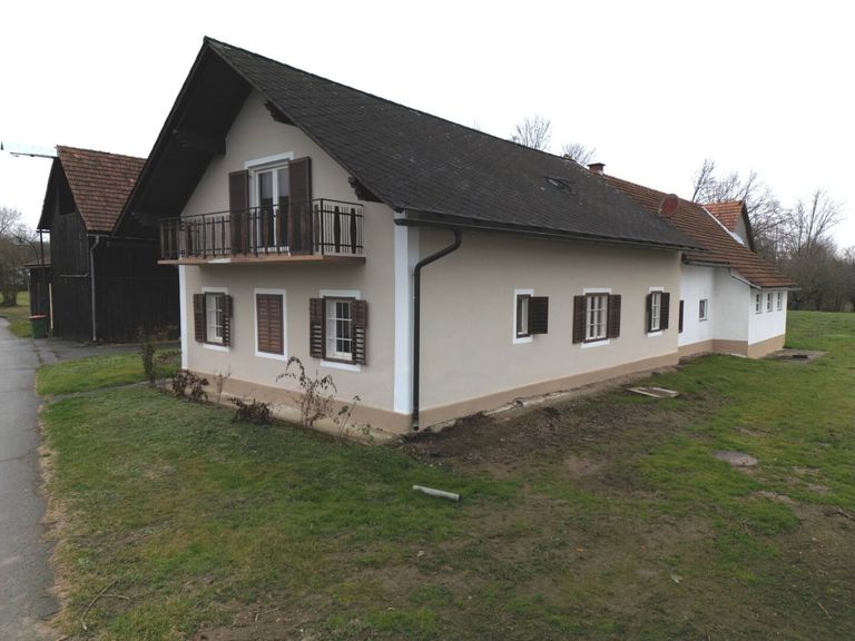 Eichfeld / Mureck - Wir dürfen hier eine kleine Hofstelle ( inaktive Landwirtschaft ) auf insgesamt knapp 1 ha Grund ( ca. 3100 m² davon BaulandDorfgebiet ) in Grünruhelage anbieten. Die Liegenschaft befindet sich am Ortsrand, angrenzend Felder und Wald, und bestehet aus dem Haupthaus, ehemaligen Stallungen, einer Scheune und einem großen Schuppen sowie einem weiteren Nebengebäude.
