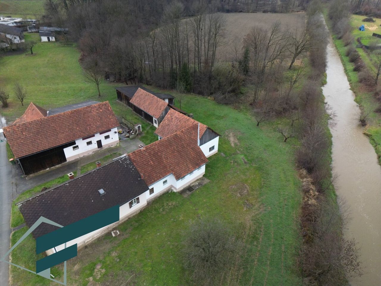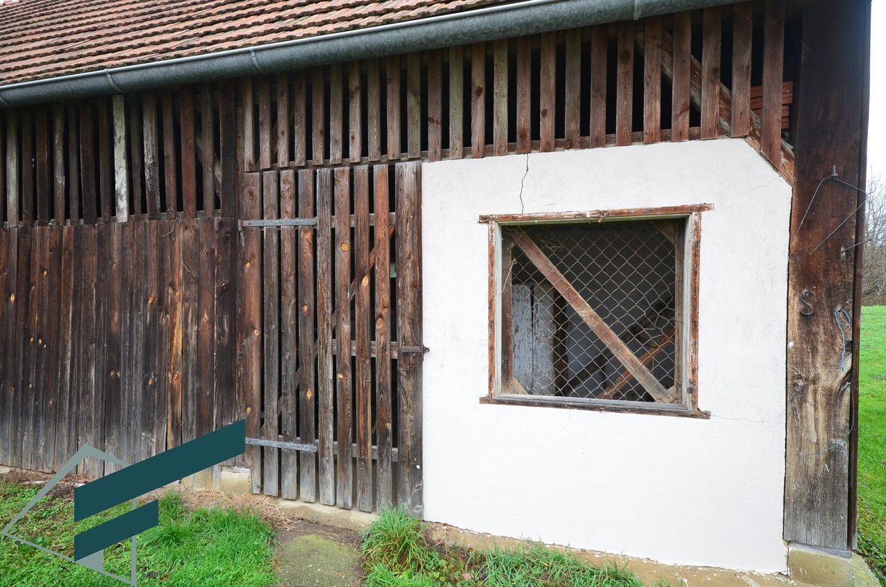 Eichfeld / Mureck - Wir dürfen hier eine kleine Hofstelle ( inaktive Landwirtschaft ) auf insgesamt knapp 1 ha Grund ( ca. 3100 m² davon BaulandDorfgebiet ) in Grünruhelage anbieten. Die Liegenschaft befindet sich am Ortsrand, angrenzend Felder und Wald, und bestehet aus dem Haupthaus, ehemaligen Stallungen, einer Scheune und einem großen Schuppen sowie einem weiteren Nebengebäude.