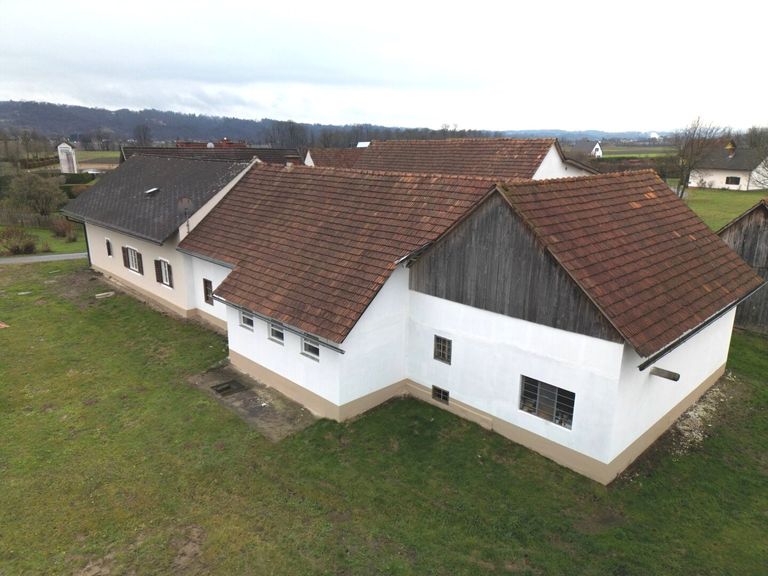 Eichfeld / Mureck - Wir dürfen hier eine Hofstelle ( inaktive Landwirtschaft ) auf knapp 1 ha Grund ( ca. 3100 m² davon BaulandDorfgebiet ) in Grünruhelage anbieten. Die Liegenschaft befindet sich am Ortsrand, angrenzend Felder und Wald, und bestehet aus dem Haupthaus, ehemaligen Stallungen, einer Scheune und einem großen Schuppen sowie einem weiteren Nebengebäude. Hierzu kommen noch 2 angrenzende Baugrundstücke mit je ca. 1030 m² , dies ergibt eine Gesamtgröße von ca. 11.404 m²