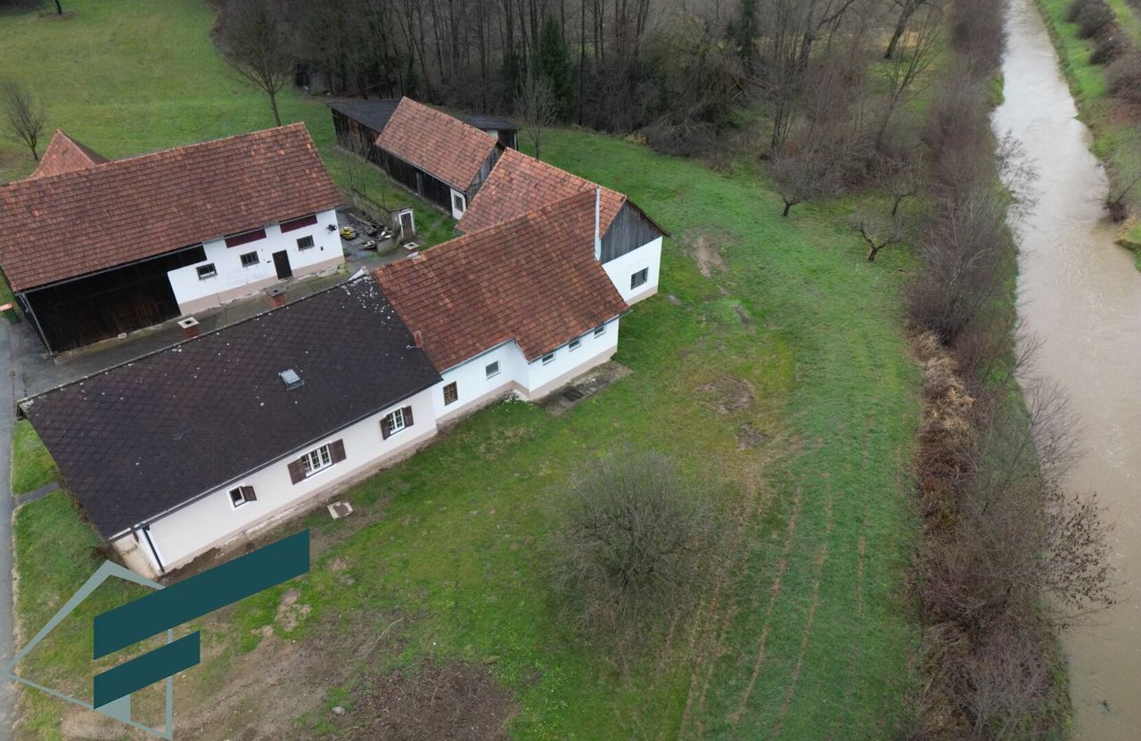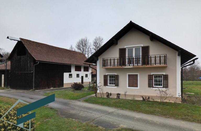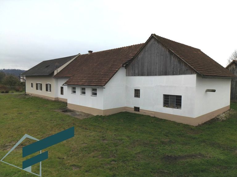 Eichfeld / Mureck - Wir dürfen hier eine Hofstelle ( inaktive Landwirtschaft ) auf knapp 1 ha Grund ( ca. 3100 m² davon BaulandDorfgebiet ) in Grünruhelage anbieten. Die Liegenschaft befindet sich am Ortsrand, angrenzend Felder und Wald, und bestehet aus dem Haupthaus, ehemaligen Stallungen, einer Scheune und einem großen Schuppen sowie einem weiteren Nebengebäude. Hierzu kommen noch 2 angrenzende Baugrundstücke mit je ca. 1030 m² , dies ergibt eine Gesamtgröße von ca. 11.404 m²