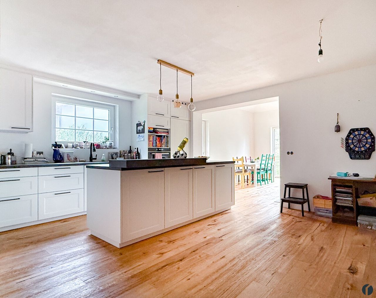 Das Haus verfügt über ca. 111 m² Wohnfläche aufgeteilt in vier Zimmer, eine offene Wohnküche mit Kücheninsel im modernen Landhausstil sowie ein großzügiges Wohnzimmer mit Kaminofen. Das Badezimmer ist mit Badewanne, Dusche, Fenster und WC ausgestattet.