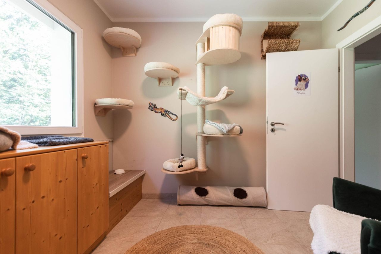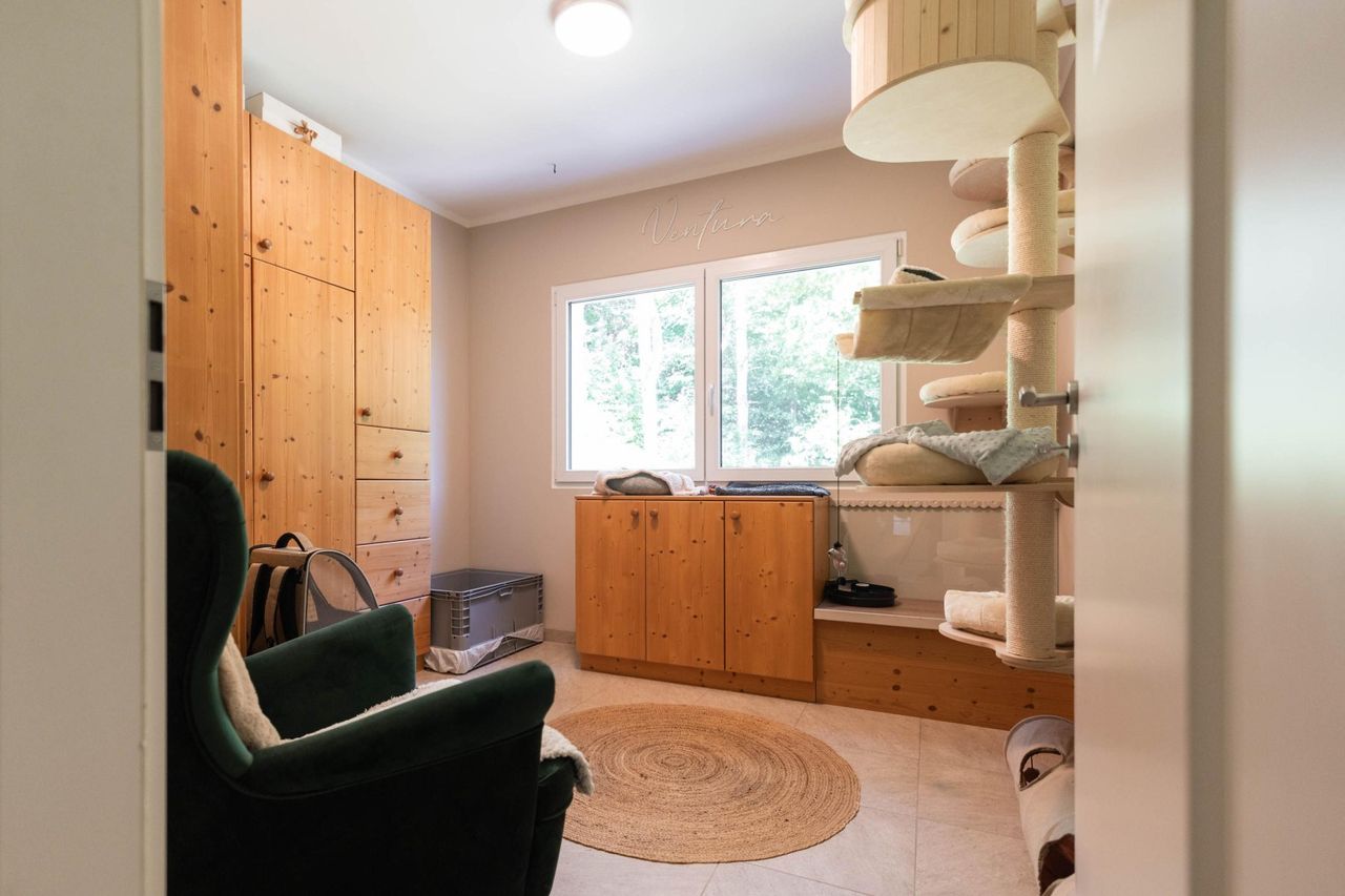 Durch die Lage direkt am Waldrand herrscht hier besonders im Sommer ein angenehm kühles Mikroklima – die frische Luft vom Wald sorgt für natürliche Erholung, und Spaziergänge oder Laufrunden beginnen direkt vor der Haustür.