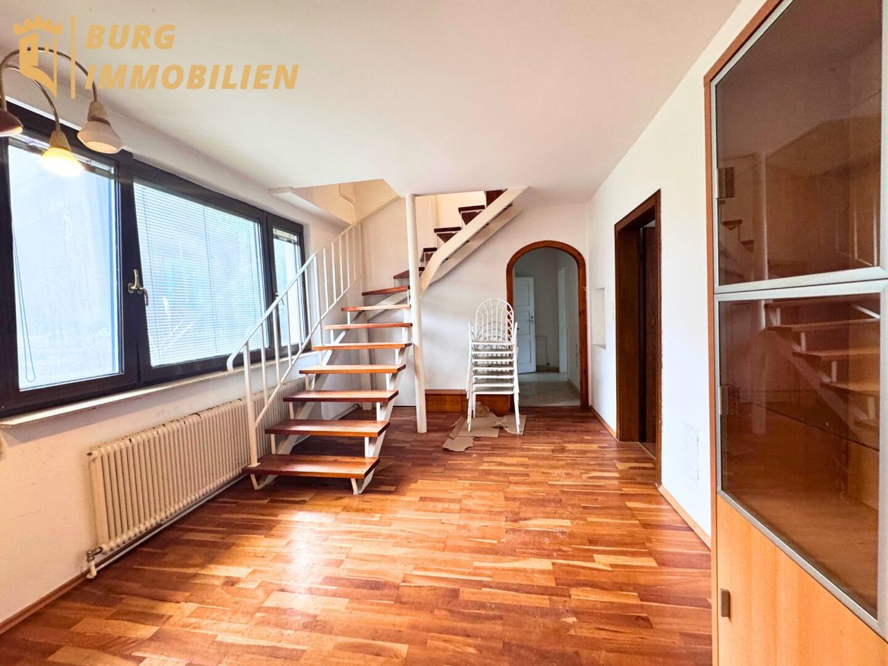 Böden: überwiegend Parkett, Fliesen in Bad/WC, Stiegenaufgang & Küche
