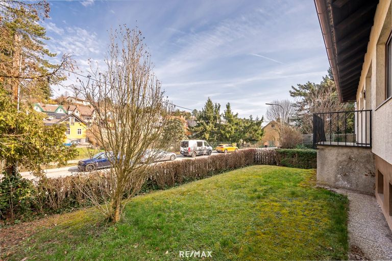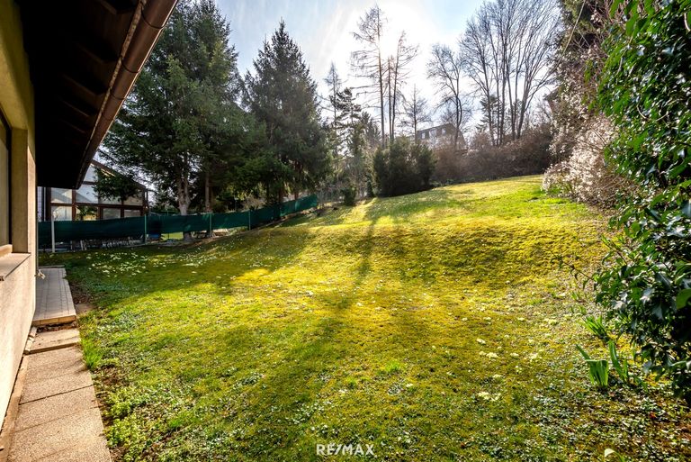 Das Grundstück verfügt über eine großzügige über 850m² große Gartenanlage in leichter Hanglage mit gepflegtem Rasen, Ziersträuchern und einem gediegenen Vorgarten, der freundlichen Zugang zum Haus ermöglicht.