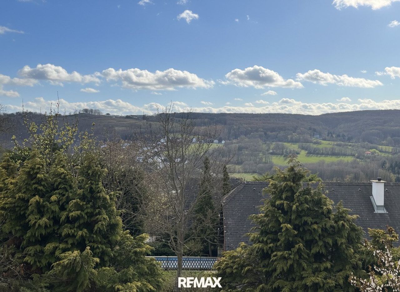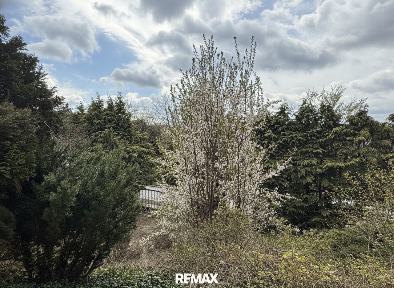 Das Grundstück selbst liegt leicht erhöht, fast wie ein stiller Beobachter seiner Umgebung, und genau dort, wo es oben eben wird, steht das Haus – eingebettet, zurückgenommen und doch mit einer Präsenz, die man nicht übersehen kann. Die Zufahrt führt hinauf, ganz selbstverständlich, und während man ankommt, entsteht dieses leise Gefühl von Abstand zum Alltag. Ein Zaun rahmt das Grundstück, dahinter eine gewachsene Hecke, die aktuell vielleicht nicht ihre schönste Form zeigt, aber genau dieses Versprechen in sich trägt, wieder zu dem zu werden, was sie einmal war: ein natürlicher Schutzraum, der Privatsphäre schenkt, ohne sich abzuschotten.