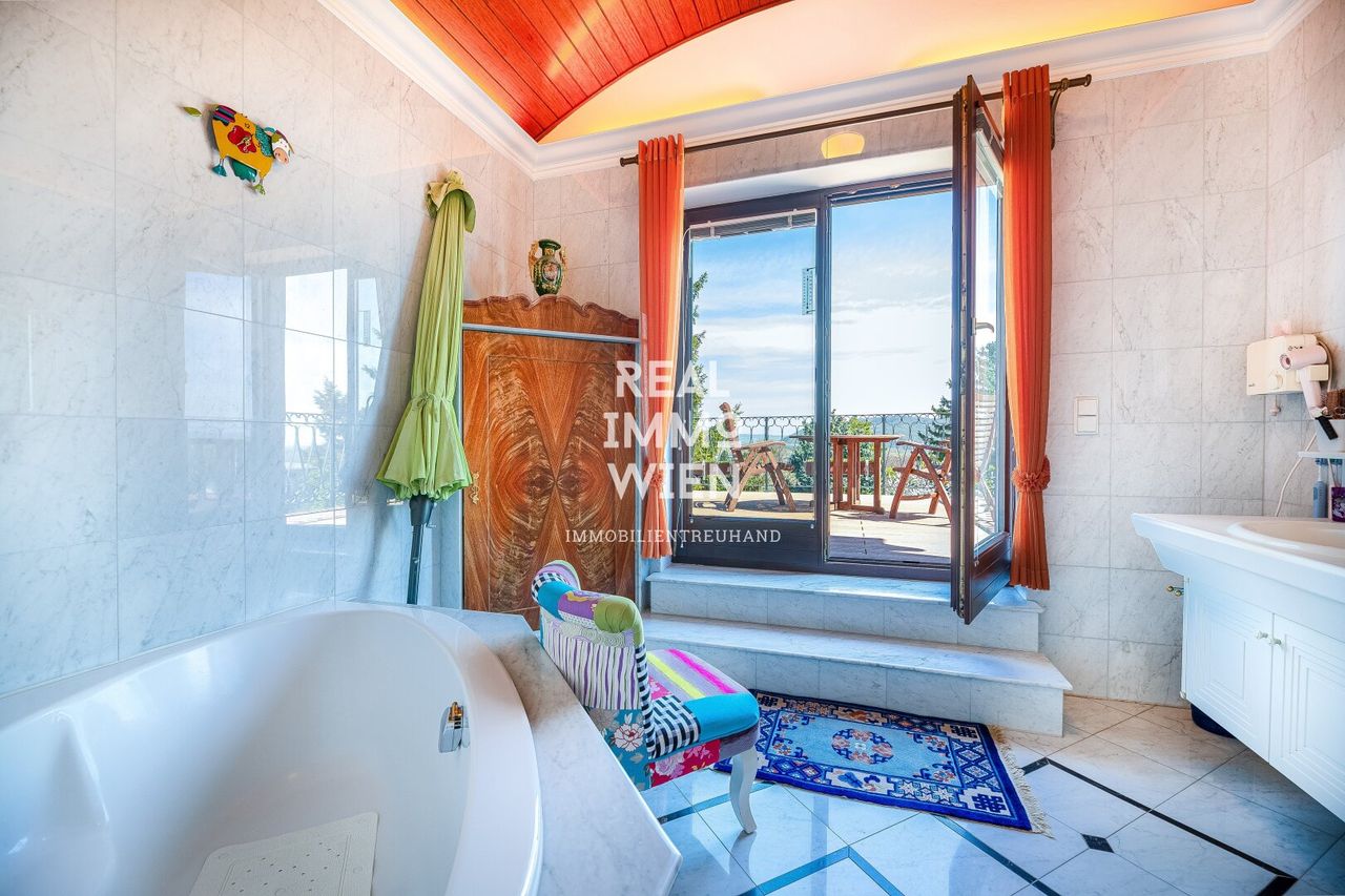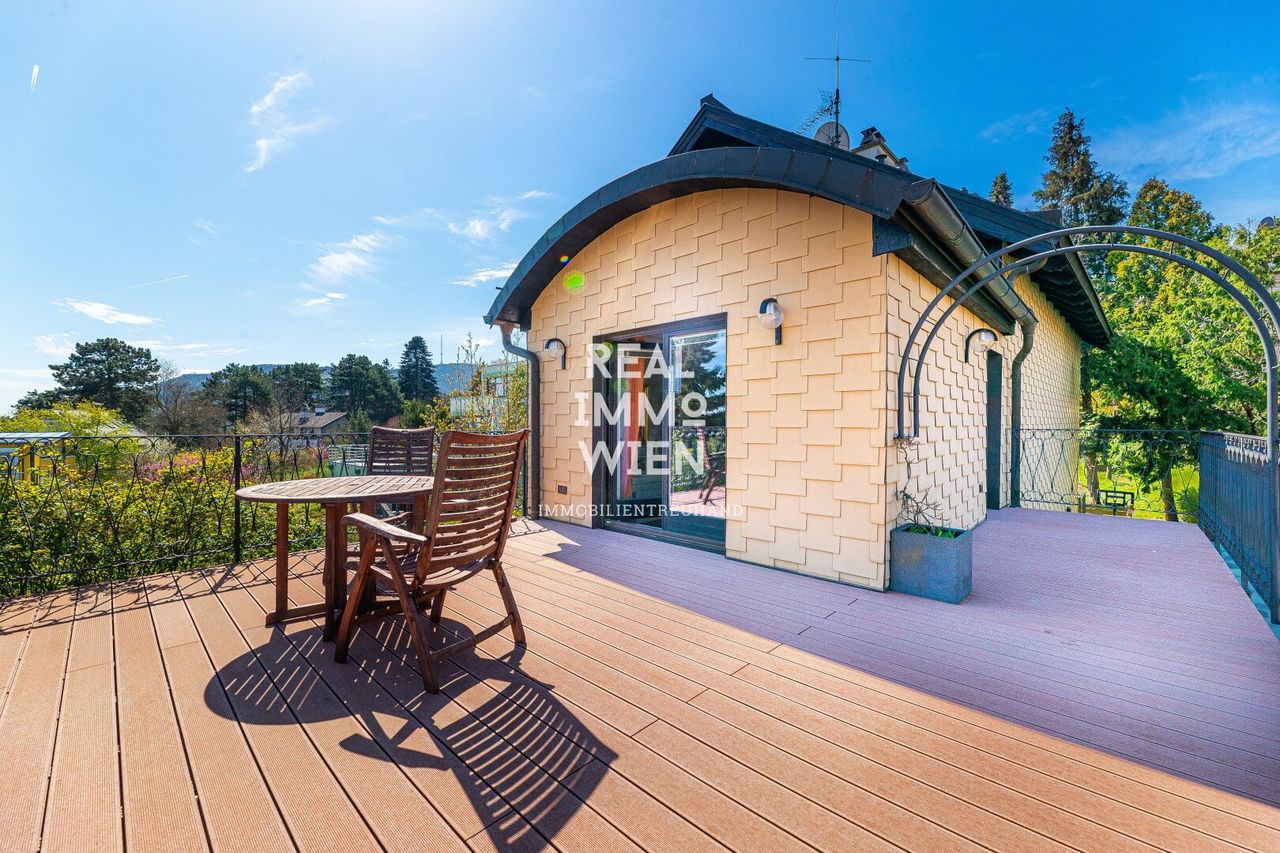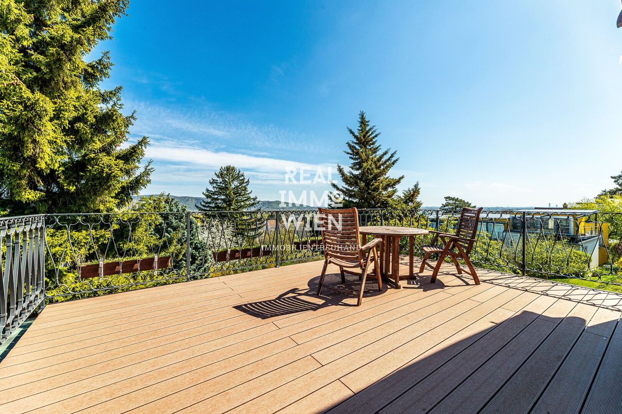 Von der Terrasse im Obergeschoss genießen Sie einen unvergleichlichen Ausblick: über Wien hinweg bis zum Stift Klosterneuburg und bei klarem Wetter sogar bis in die Tschechische Republik und...