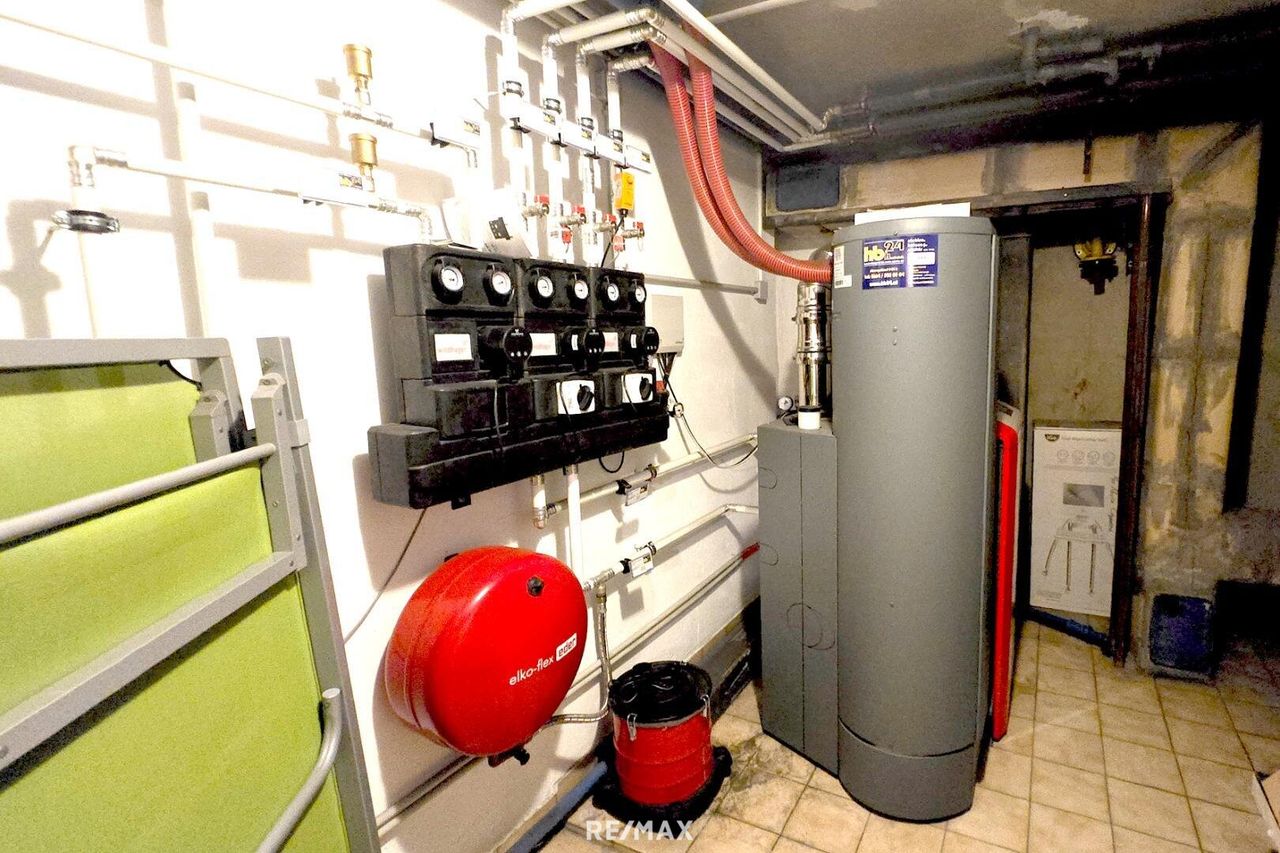 Technikraum mit Windhager Pelletkessel und Warmwasser-Wärmepumpe (neu)