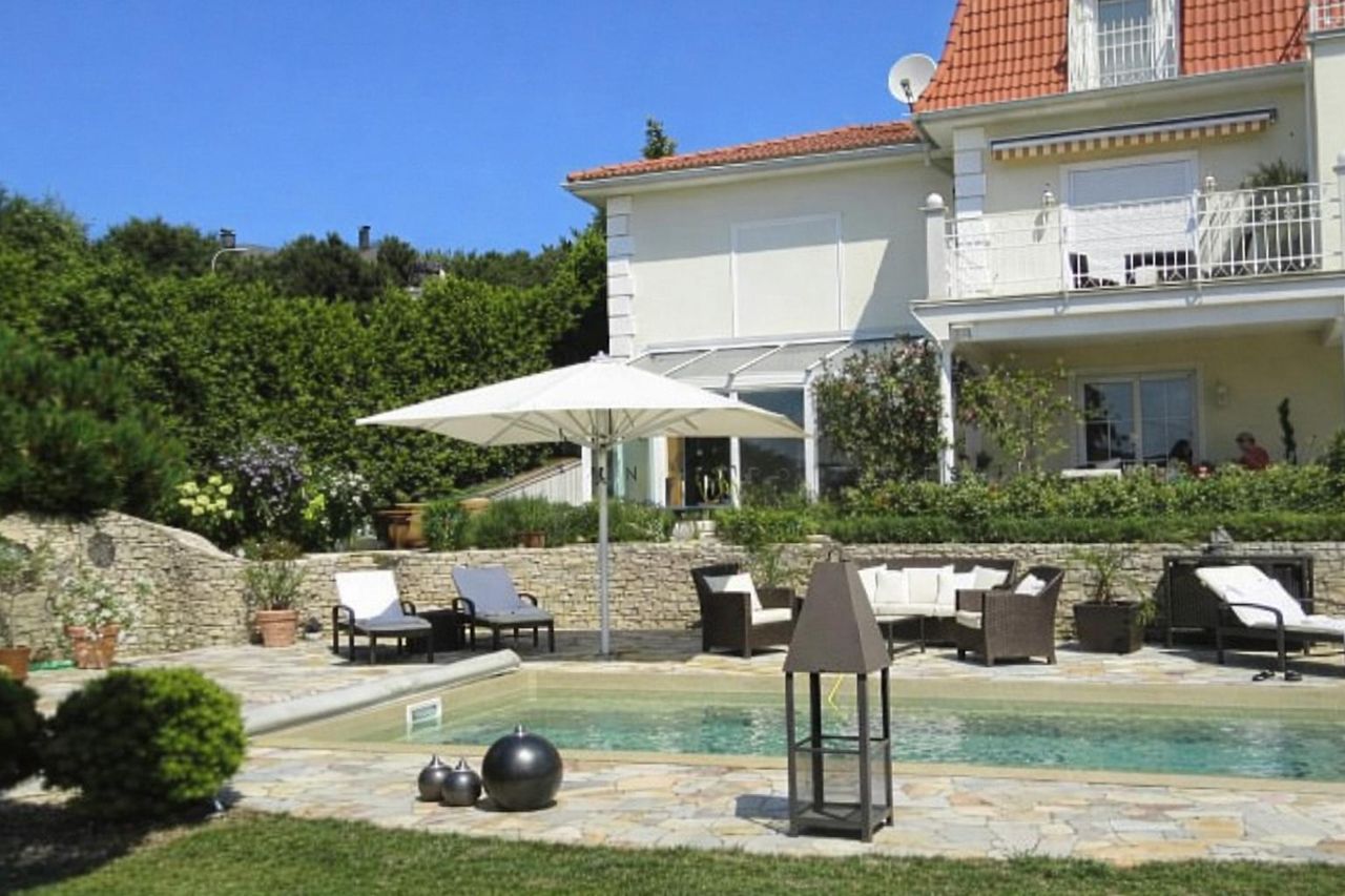Der Außenbereich überzeugt mit: Swimmingpool, Whirlpool, Grillplatz, möblierter Pavillon, Kinderspielplatz, vollautomatische Bewässerung, beheizte Einfahrt und Eingangsbereich, in allen Etagen und Außenbeleuchtung.