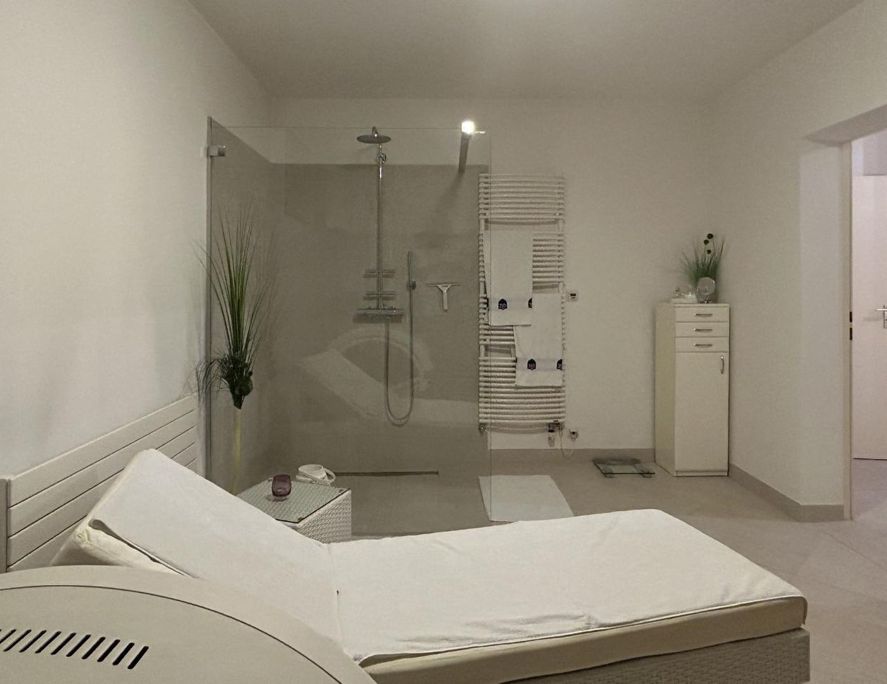Das Untergeschoss begeistert mit einem weiteren Highlight: Ein geschmackvoll integrierter Wellnesstempel lädt mit Sauna, Solarium, Dusche und einem Ruhebereich ein, der ebenfalls Seinesgleichen sucht.