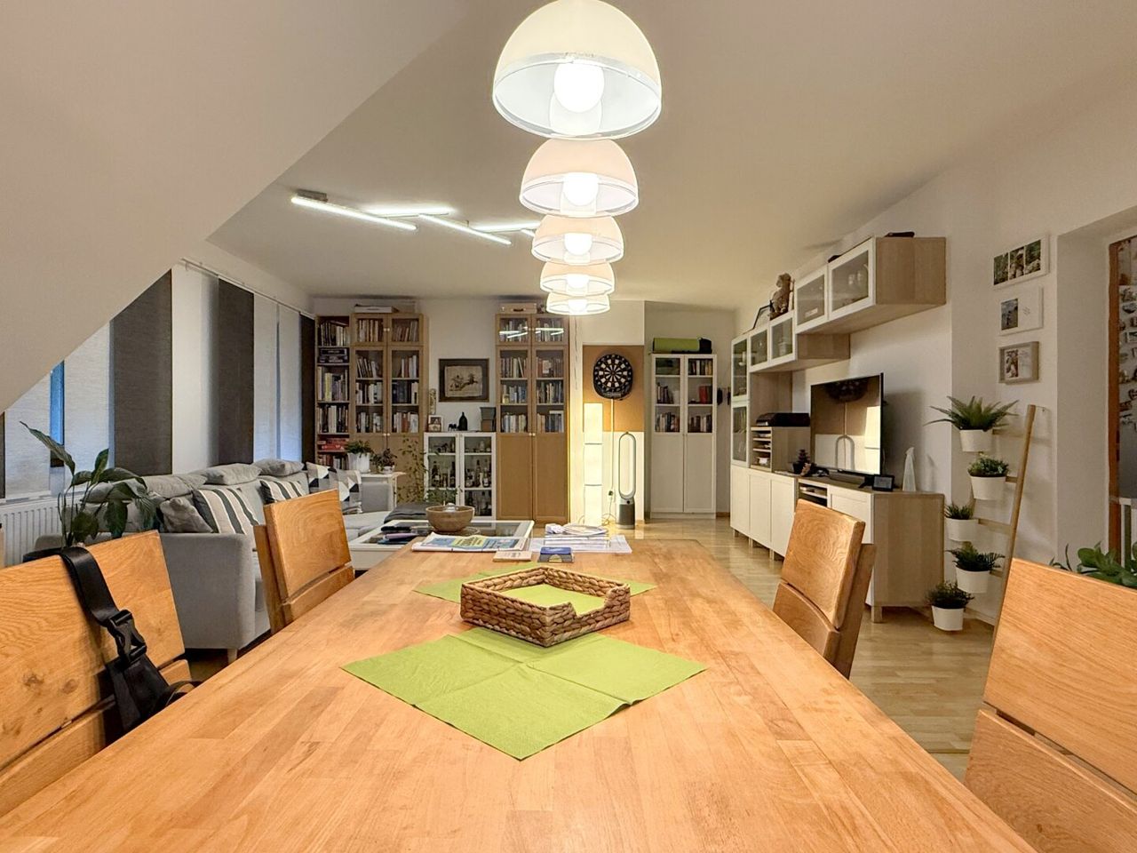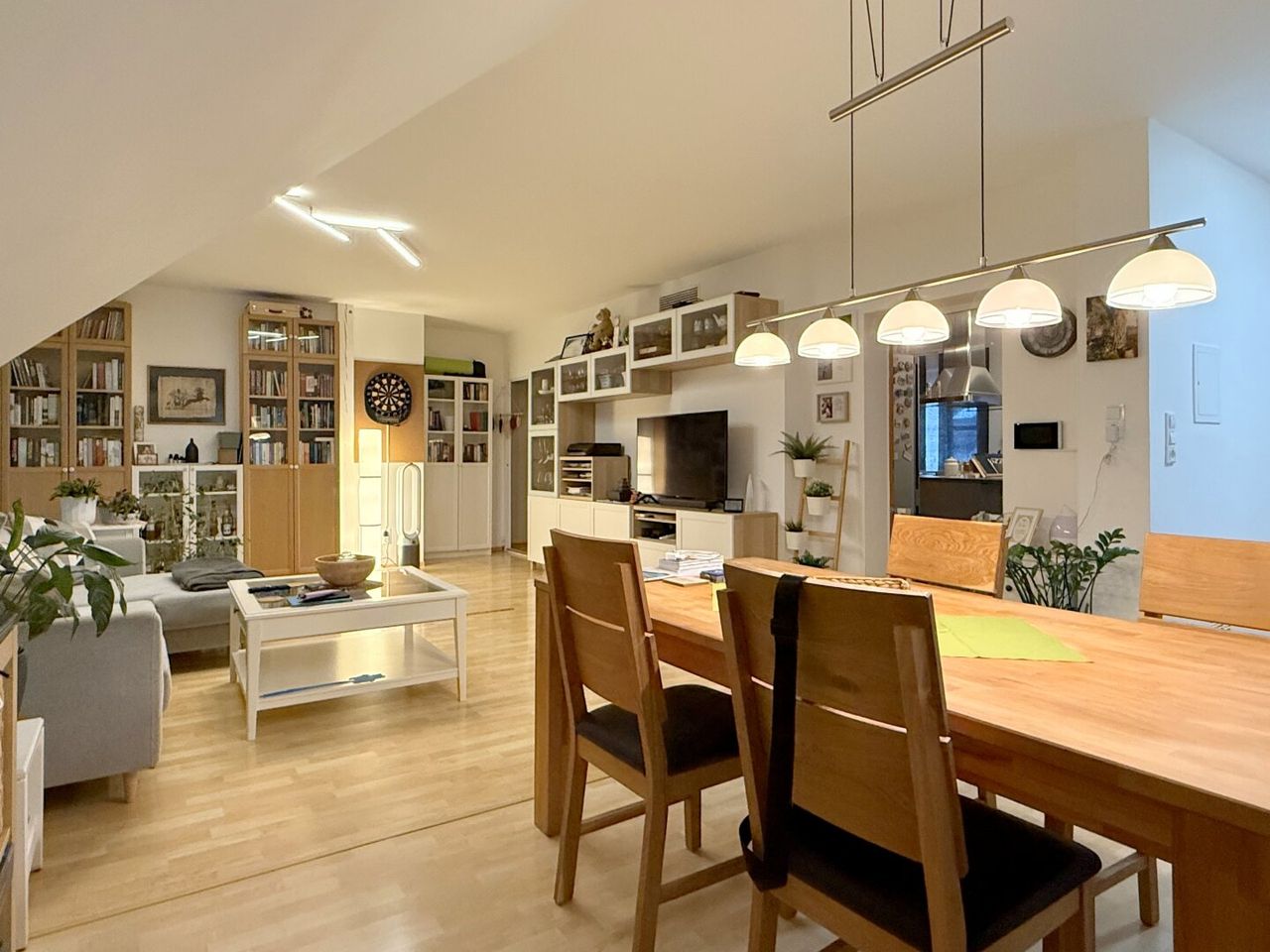 Eine Treppe weiter oben öffnet sich eine zweite Welt, die Dachgeschosswohnung. Ca. 89 m² misst sie, hier ist bereits die Verjüngung eingezogen, das merkt man sofort