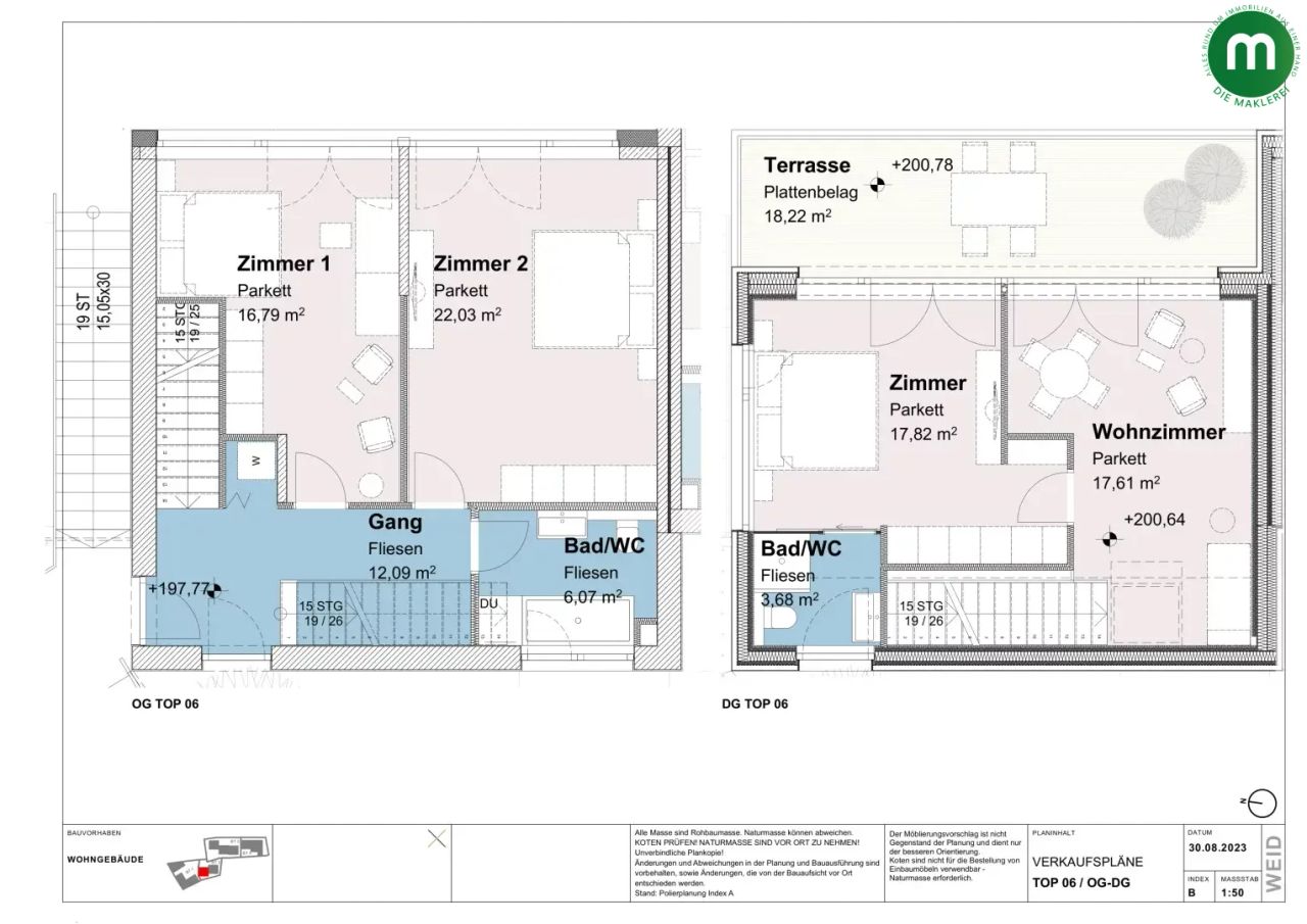 Das Objekt wird belagsfertig um 822.000 Euro angeboten, sodass Käufer ihre individuelle Ausstattung frei wählen können. Alternativ besteht die Möglichkeit einer schlüsselfertigen Übergabe gemäß der detaillierten Bau- und Ausstattungsbeschreibung zum Preis von 880.000 Euro.