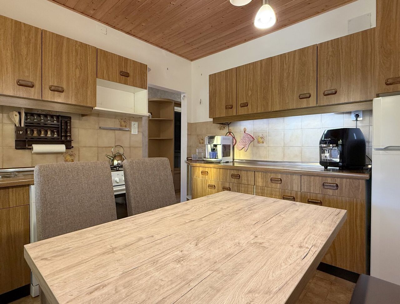 Weiter ins Haus vorgedrungen, gelangt man in die Küche. Standesgemäß natürlich abgetrennt vom Wohnraum mit rausreichend Platz, sich kulinarisch auszutoben. Der Blick in den Garten auf die Hochbeete lässt Sie Ihre Kreativität beim Kochen erleben.