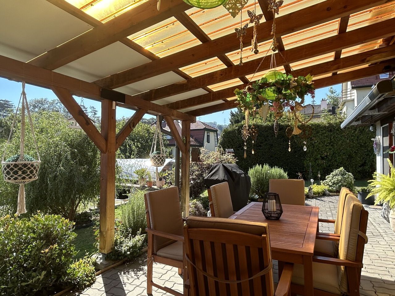 Beim großen Tor eingetreten, steht man im sonnigen Garten. Das gesamte Grundstück verfügt über 478 m², dadurch aber im Vorgarten mit Platz gespart wurde, erleben Sie im hinteren Teil des Gartens eine gefühlte Großflächigkeit.