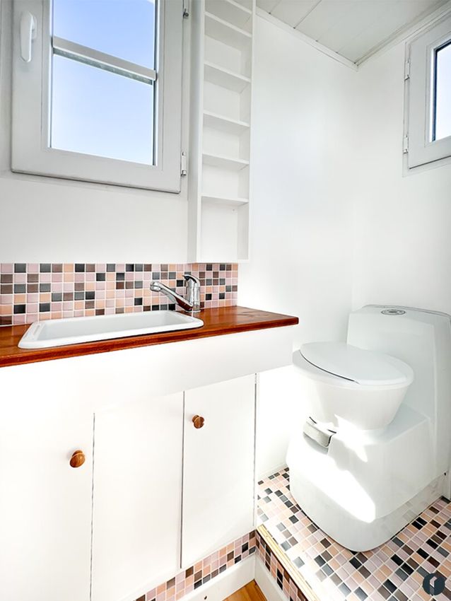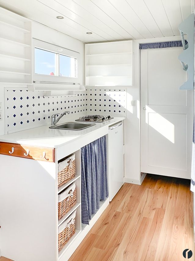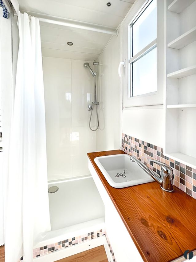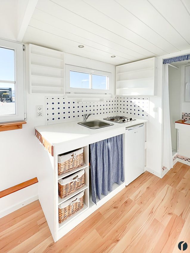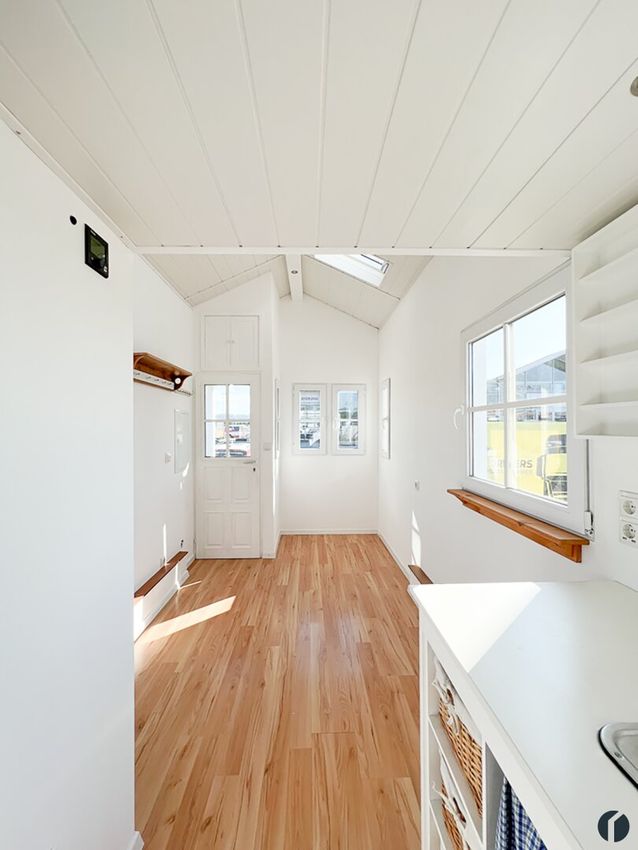 Erfüllen Sie sich Ihren eigenen kleinen Wohntraum mit einem Tiny House. Dieses wunderschön gestaltete kleine Häuschen auf Rädern sieht nicht nur entzückend aus, es ist auch super ausgestattet und lässt sich hervorragend mit weiteren Einrichtungsgegenständen ganz nach ihrem persönlichen Geschmack und Bedürfnissen ausstatten. Der derzeit sehr trendige und sehr gemütlich anmutende moderne Landhausstil ist hier bereits außen wie innen perfekt umgesetzt.