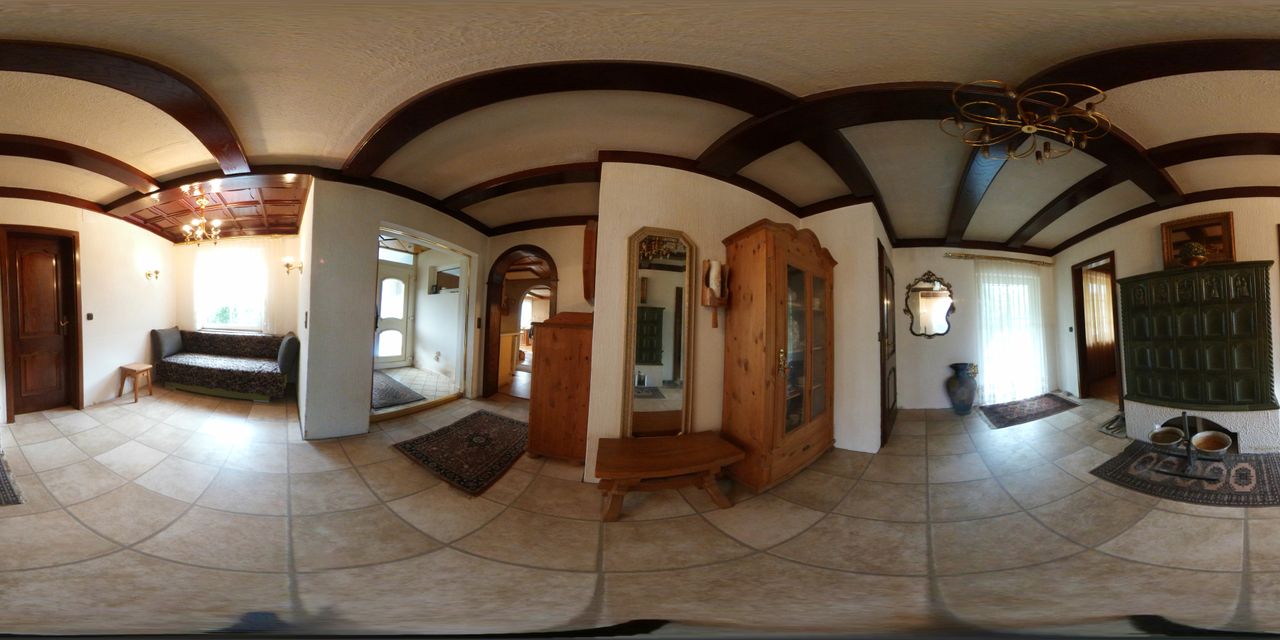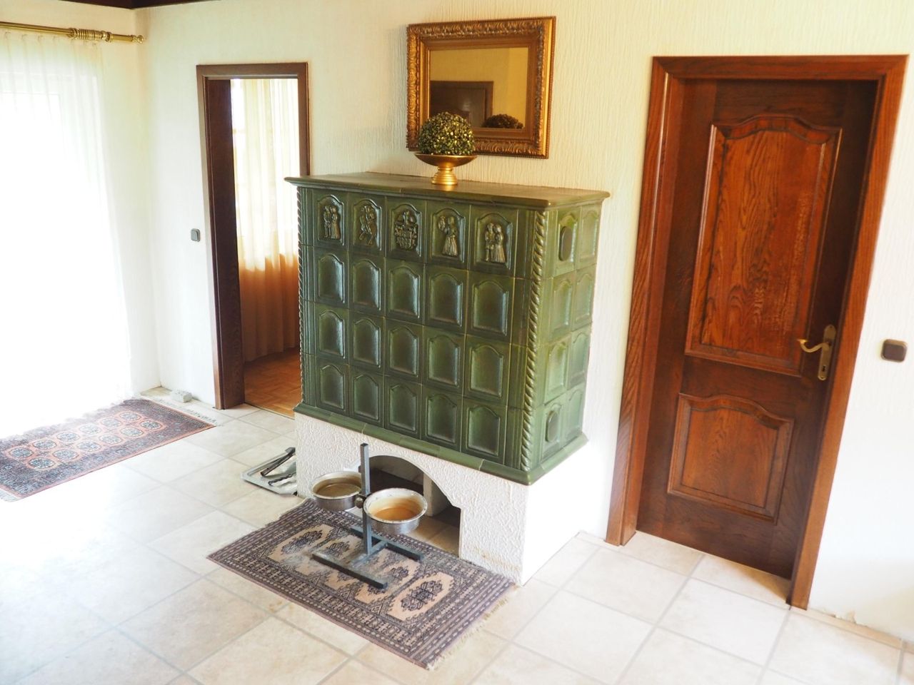 Das Vorzimmer und die zwei gleich großen Zimmer werden mittels eines sich über alle drei Räume erstreckenden Kachelofen beheizt.