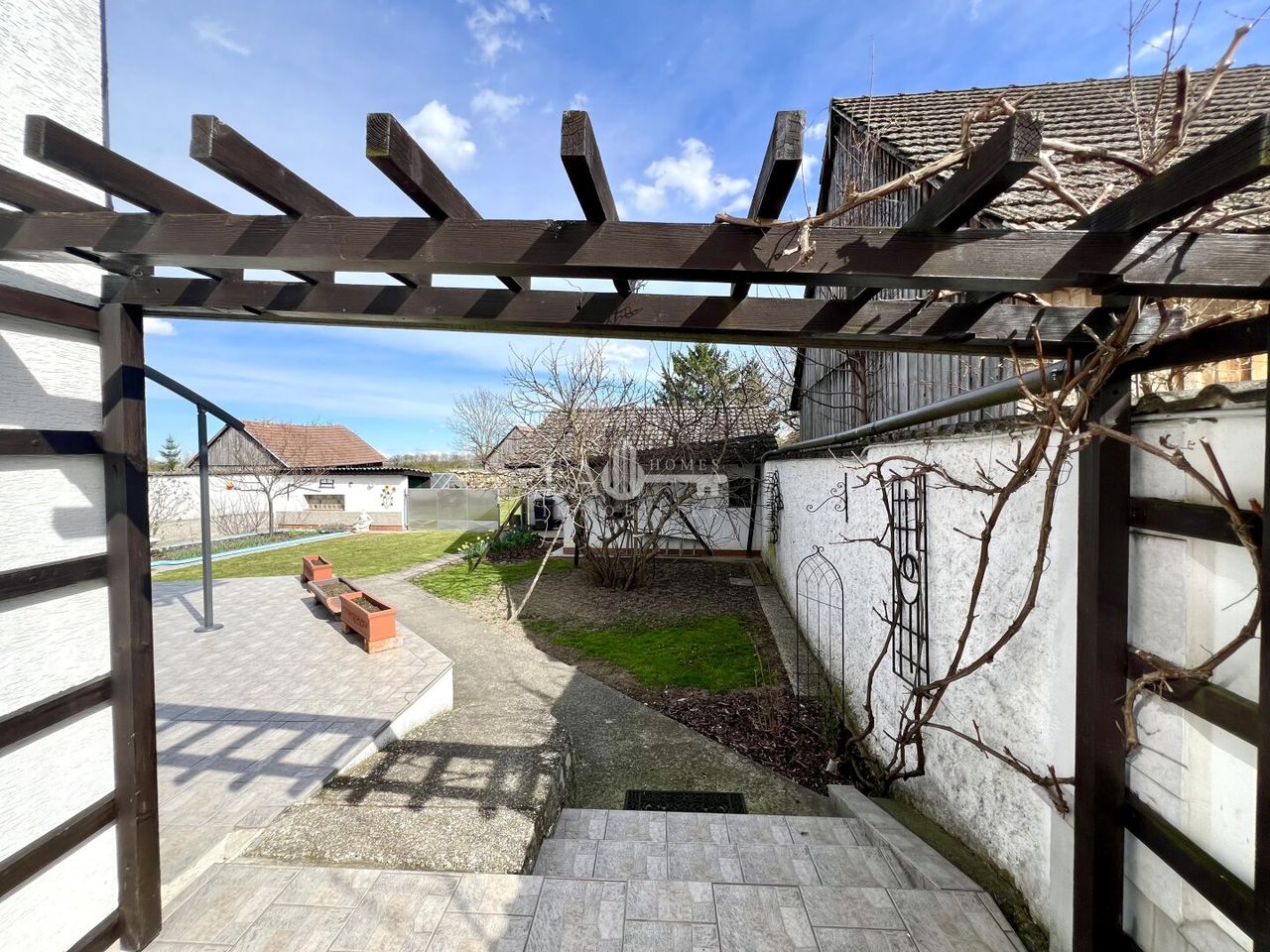 Der sonnige und liebevoll gestaltete Garten mit schönen Altbestand an Pflanzen und seinen idyllischen Gartenhaus, Glashaus, Gemüsegarten, Werkstatt und Holzlagerschuppen lädt zum Verweilen ein.
