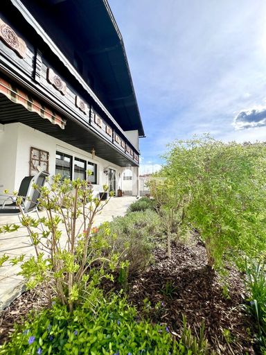 Das Grundstück (bietet von seinen beiden großzügigen Terrassen eine tolle Grünkulisse, ein sehr gepflegtes Gartenambiente mit vielen Details.