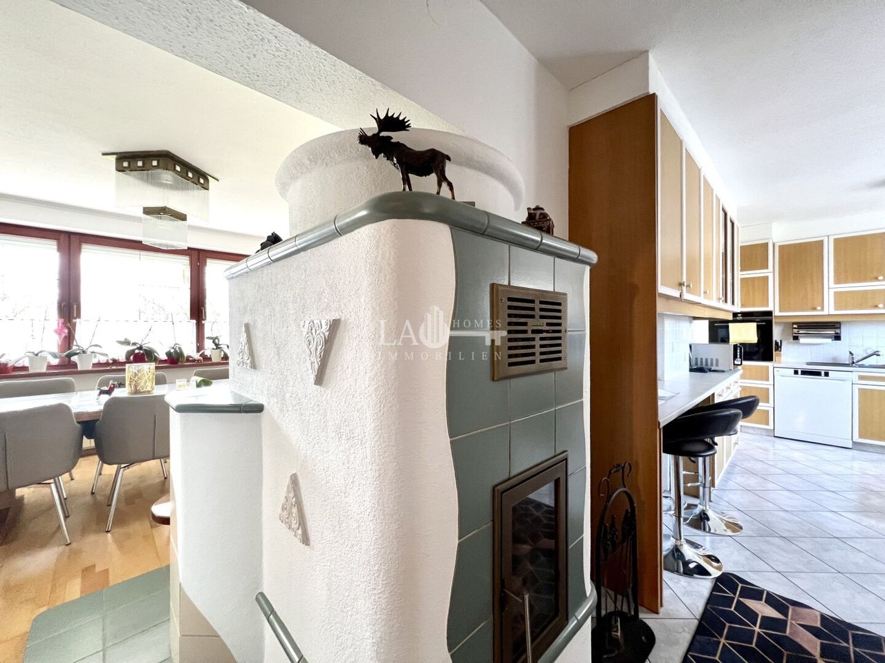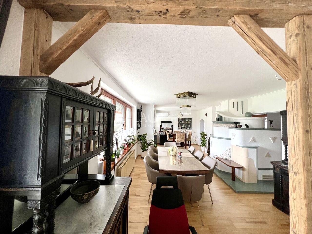 - großzügiges Wohn - Esszimmer mit Kachelofen, mit direktem Zugang auf die Terrasse und in den sehr gepflegten Vorgarten