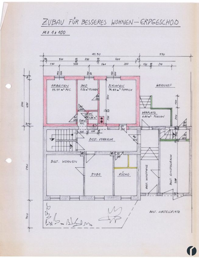 Beheizt wird das Haus über eine Gas-Zentralheizung (Radiatoren), im Obergeschoss zusätzlich durch einen Kaminofen. Sanierungen wurden laufend durchgeführt, der Zubau des Obergeschosses erfolgte im Jahr 1987.