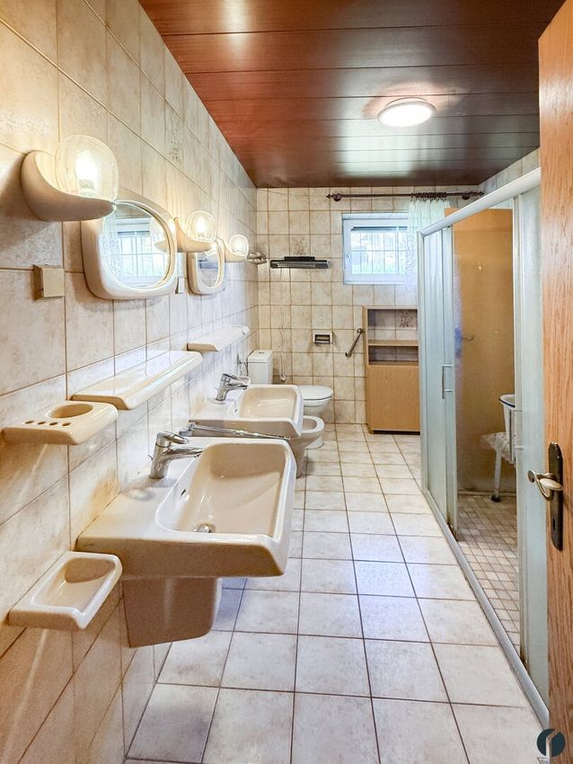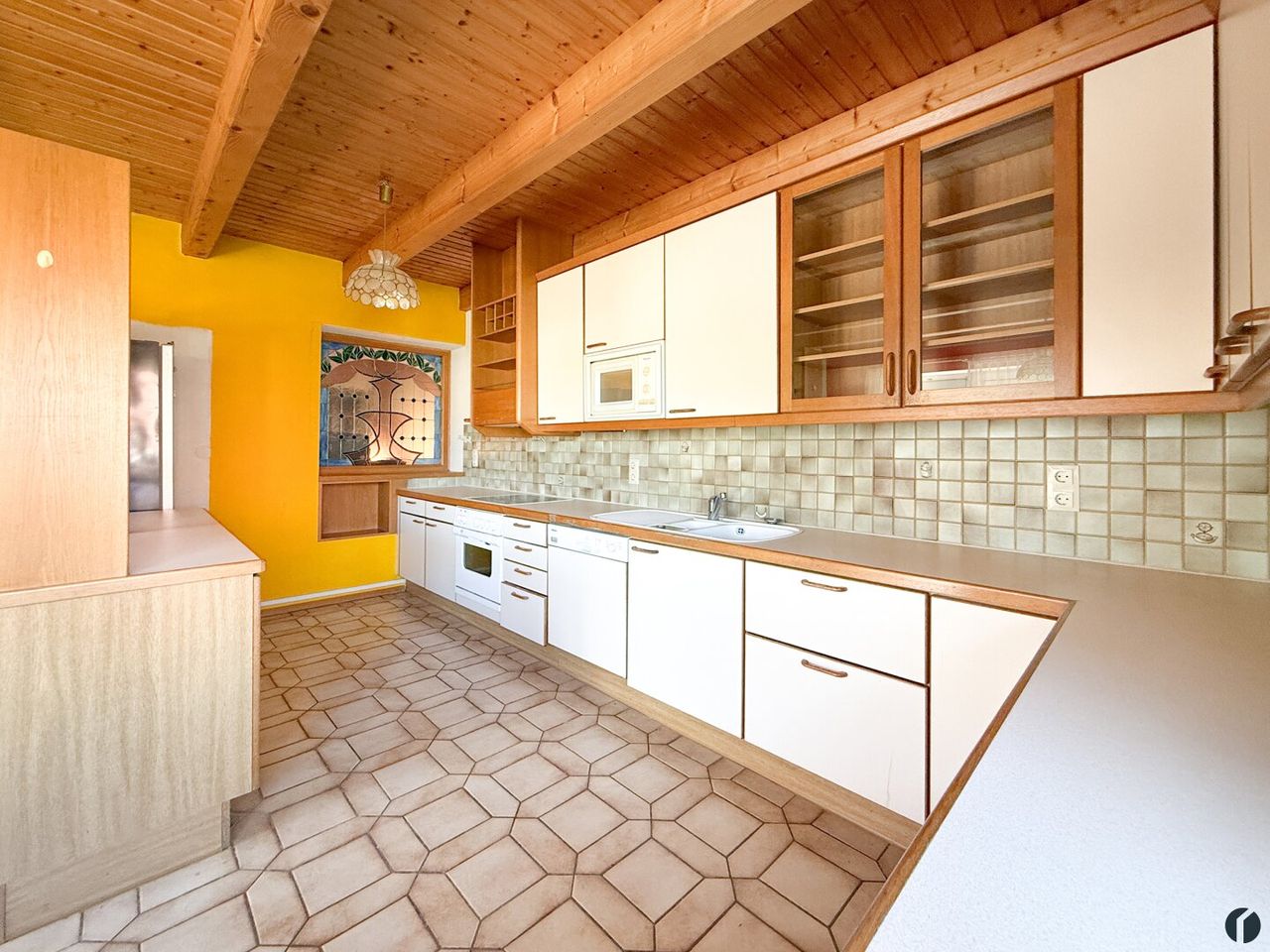 Im Obergeschoss warten weitere Räume darauf, als neues Zuhause genutzt zu werden: Zwei großzügige Schlafzimmer, ein Wohnzimmer, eine offene Küche mit Essbereich, ein Bad, separates WC sowie drei zusätzliche Zimmer bieten flexible Nutzungsmöglichkeiten. Die sonnige ca. 23m² große Terrasse mit Ausblick rundet das Raumangebot ab.
