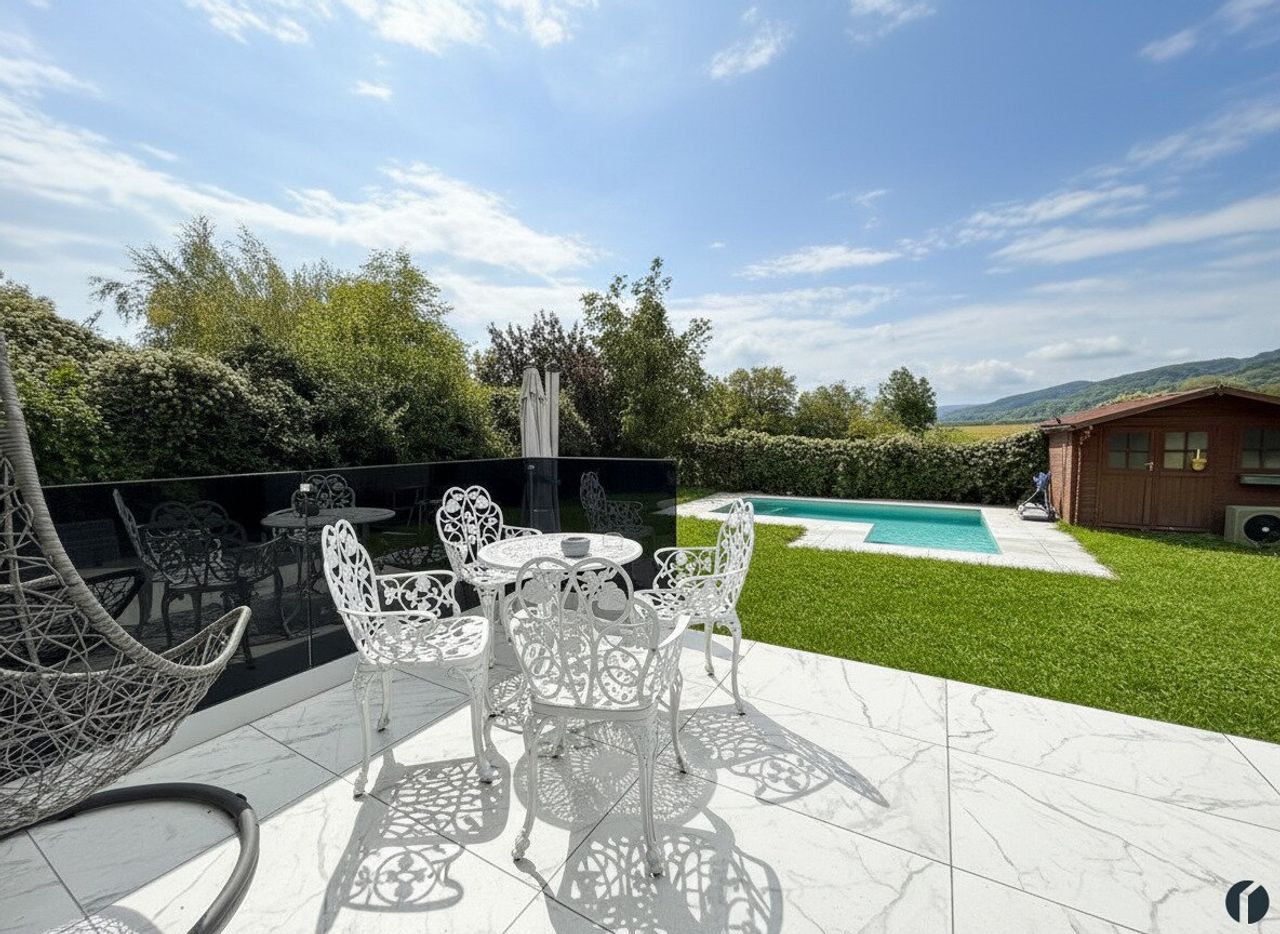 Den Sommer können Sie im Garten auf der großen Terrasse sowie am eigenen Swimmingpool genießen. Die ideale Lage am Ortsrand in einer Sackgasse bietet Ihnen das optimale Ambiente für ihre Erholung.
