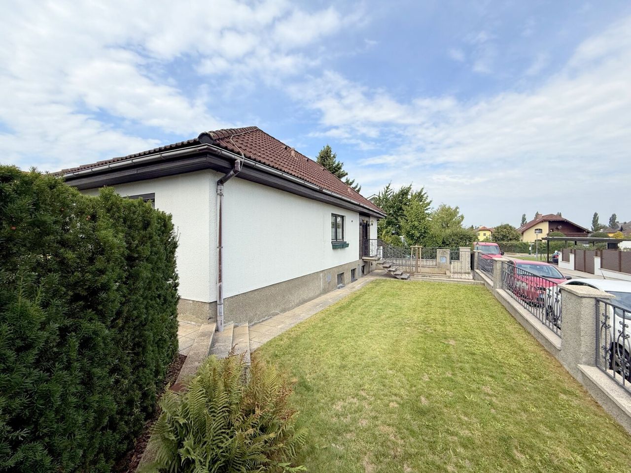 Wer schon einmal in einem Bungalow gewohnt hat, weiß die Vorzüge zu schätzen: kein ständiges Stiegensteigen, alles auf einer Ebene, bequem und praktisch. Genau das bietet dieses Haus in einer jungen, ruhigen Siedlung von Königstetten – kombiniert mit einem weitläufigen, hervorragend proportioniertem Grundstück von rund 790 m² und einem Garten, der in seiner Größe und Ausrichtung begeistert.