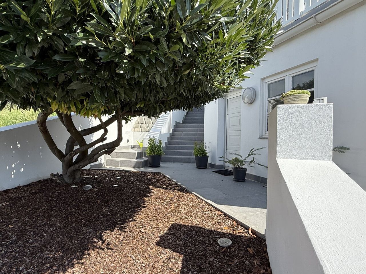Ihre Gäste nehmen den charmanten seitlichen Weg zum eigentlichen Haupteingang. Sie selbst? Ein Knopfdruck – die Garage öffnet sich, die Autos verschwinden und Sie betreten trocken Ihr Zuhause. Kleiner Alltagszauber inklusive.