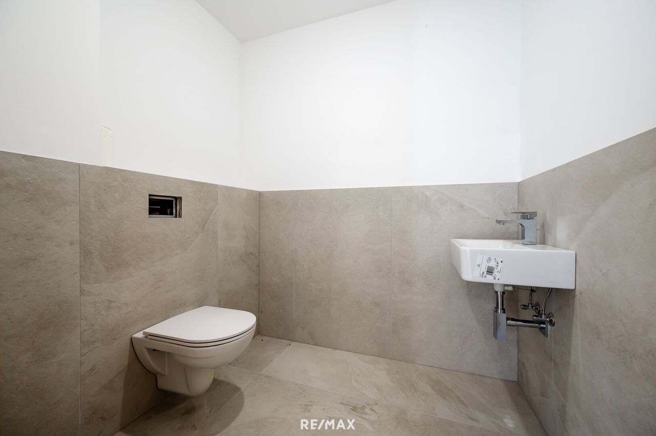 Ein Gäste-WC im Erdgeschoß sowie durchdachte Abstellflächen sorgen für zusätzlichen Komfort im Alltag. Der Grundriss ist klar strukturiert und ideal für Paare wie Familien, da alle Räume separat begehbar sind – mit einem Wort: Wohlfühlambiente mit Raum zur Entfaltung.